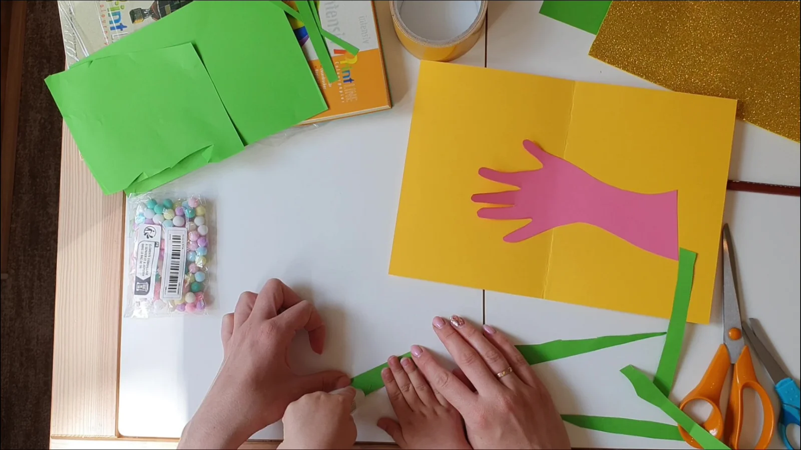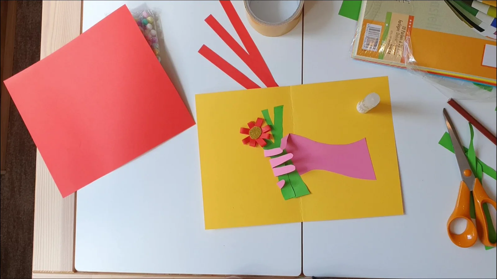 Ebben a képeslapban szó szerint benne lesz a gyermeked keze, hiszen az elkészítéséhez éppen a kis kezeket rajzoljuk körbe, majd várjuk ki és ragasztjuk fel egy csokor virág kíséretében. 🤗