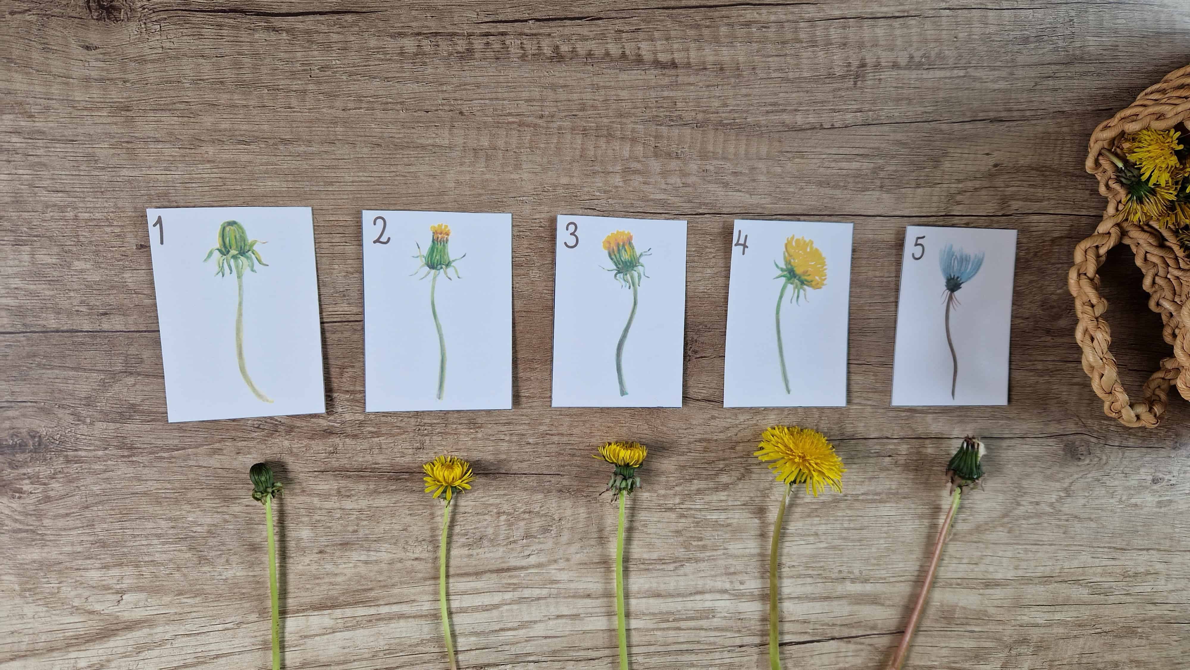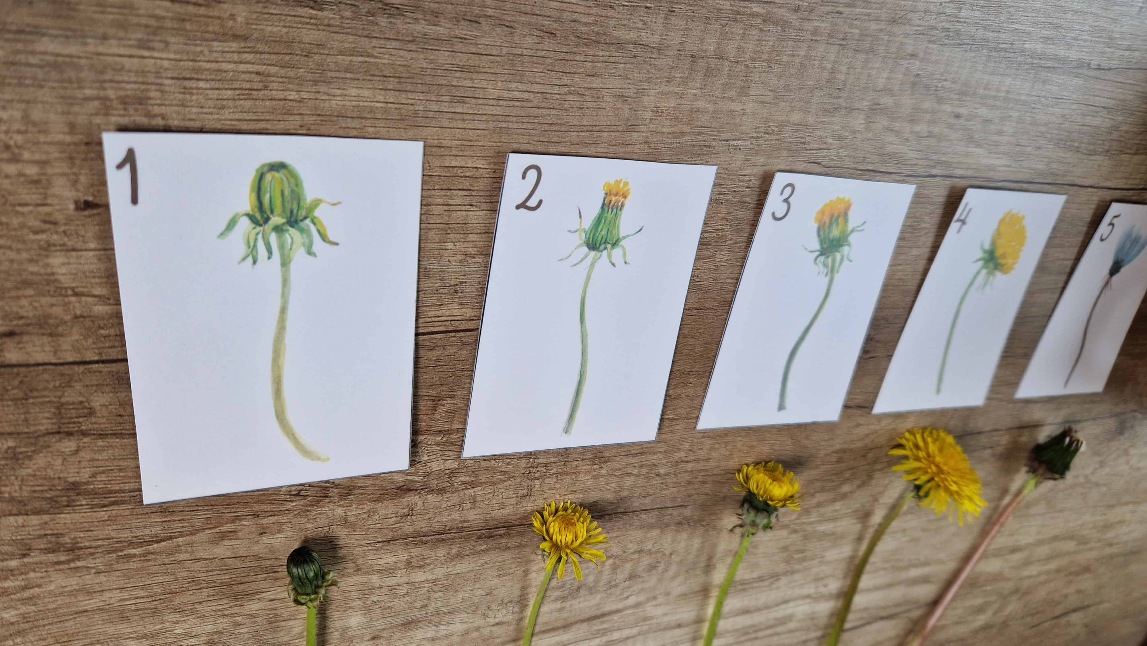 Az is megnyugtatja őket, ha megfigyelhetnek dolgokat, változásokat és tapasztalatokat gyűjthetnek ezzel kapcsolatban. Továbbá kb. 4 éves kortól nagyon intenzíven érdekli a gyermekeket az elmúlás – aminek feldolgozásához kiváló lehetőség lehet ennek a kártyacsomagnak a közös nézegetése, vizsgálata, kitérve arra, hogy a pitypangok is megszületnek, majd felcseperednek, virágba borulnak és végül elszórják bóbitáikat, amelyekből újabb sok-sok pitypang nő majd jövőre.