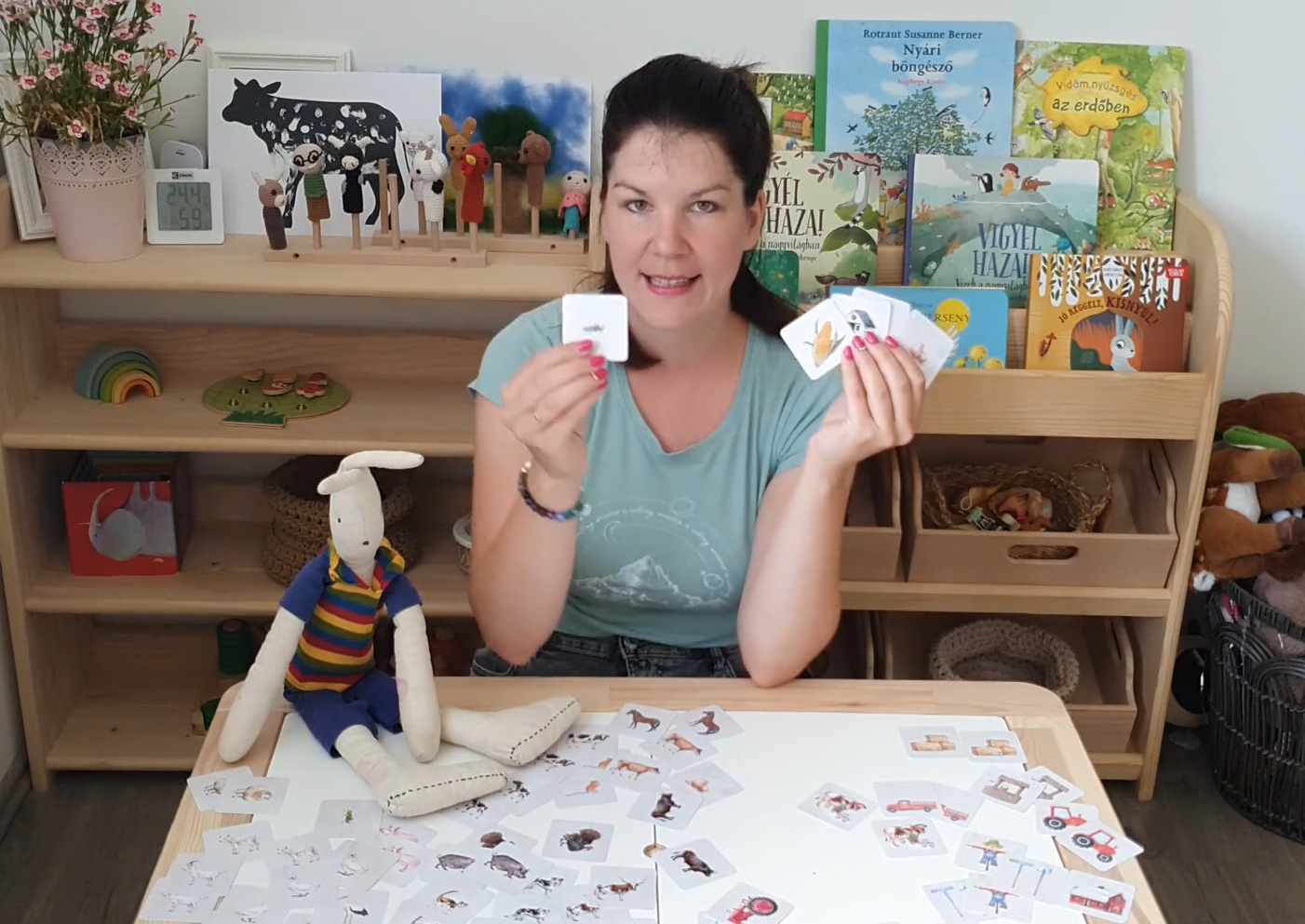 – Nyomtass ki mindegyikből 2 db-ot és keressétek meg, hogy melyik állatnak ki a párja. Ezen kívül pedig egy-egy szerszám, eszköz kártya is bekerülhet a megfigyelésbe, pl a traktor, aminek a hangját is utánozhatjátok együtt.