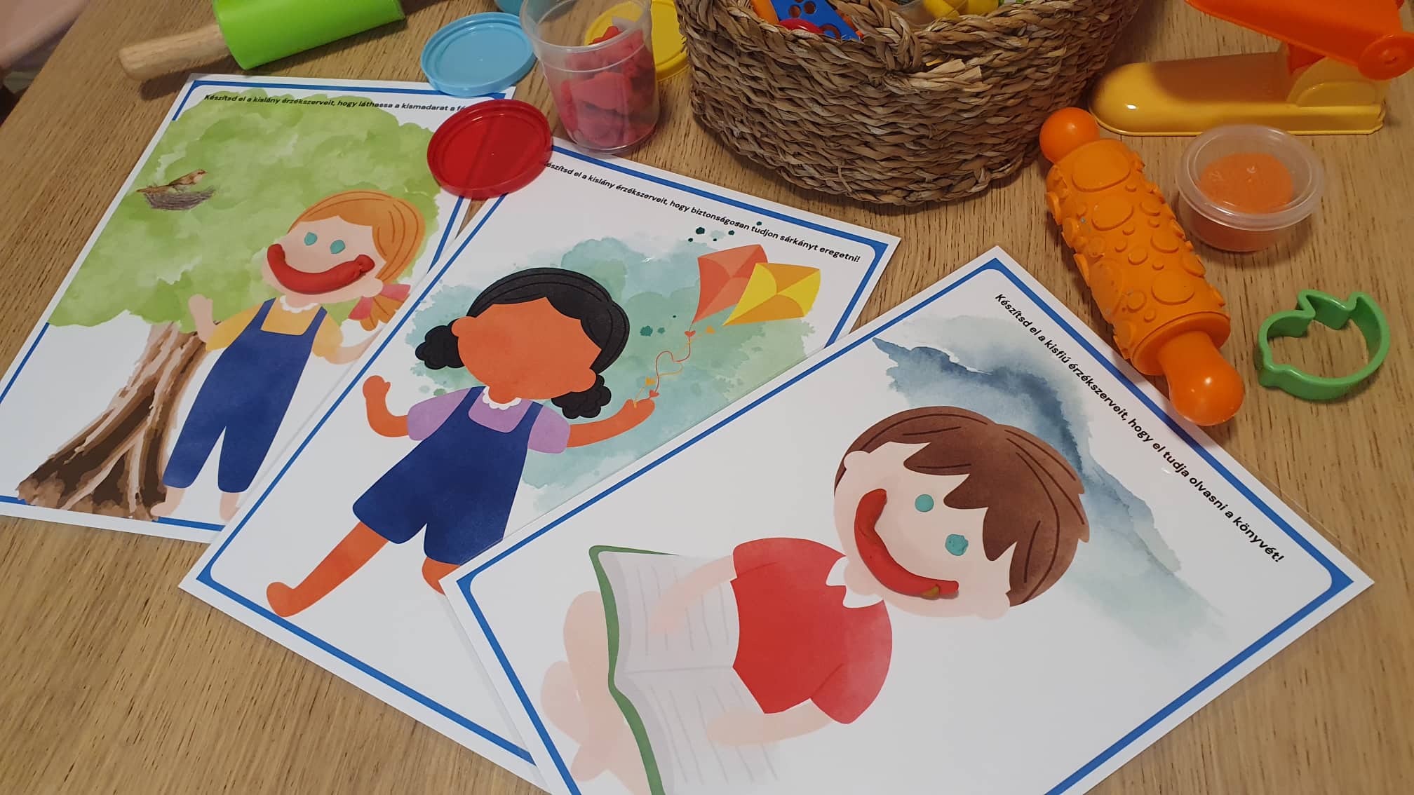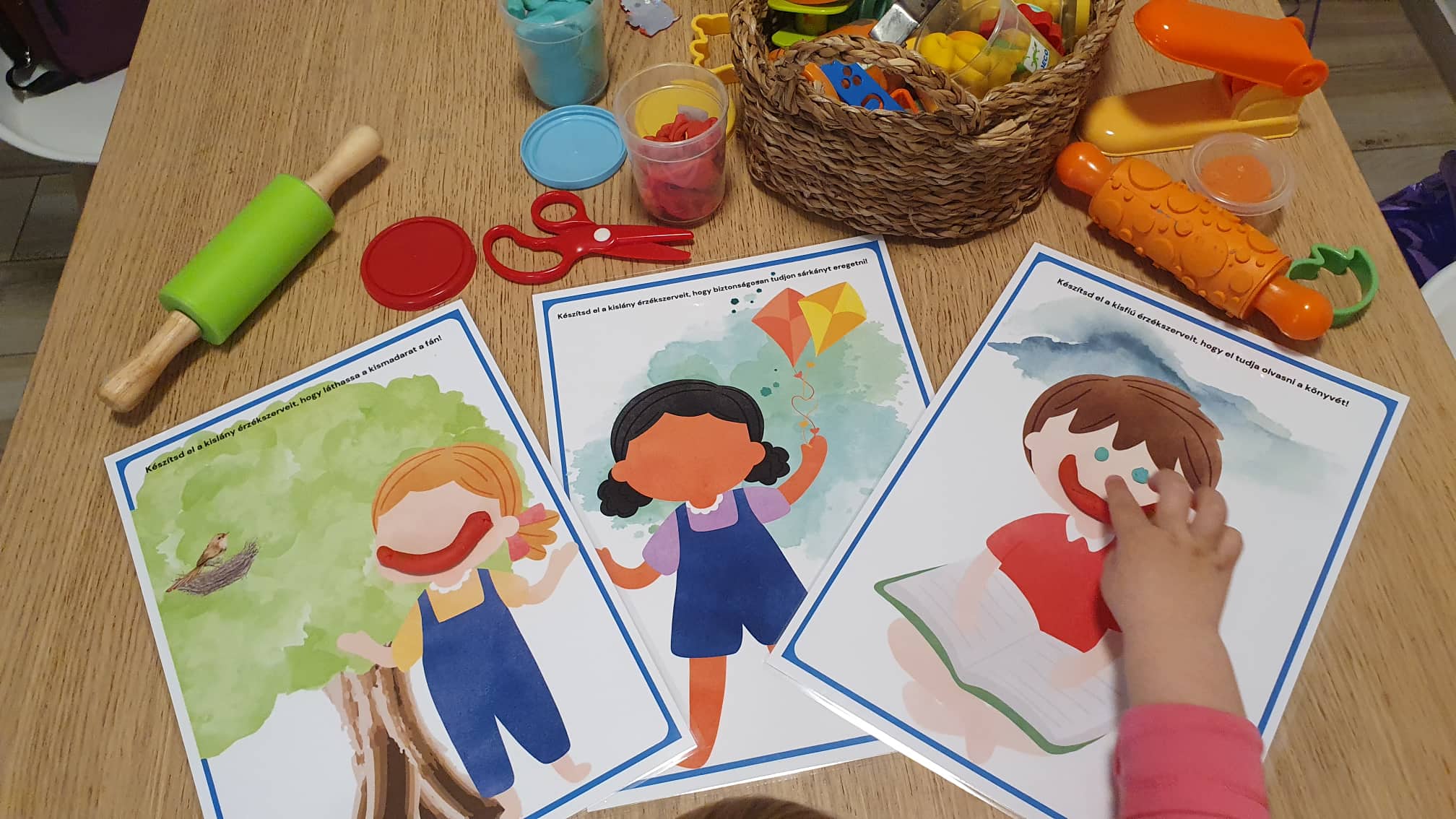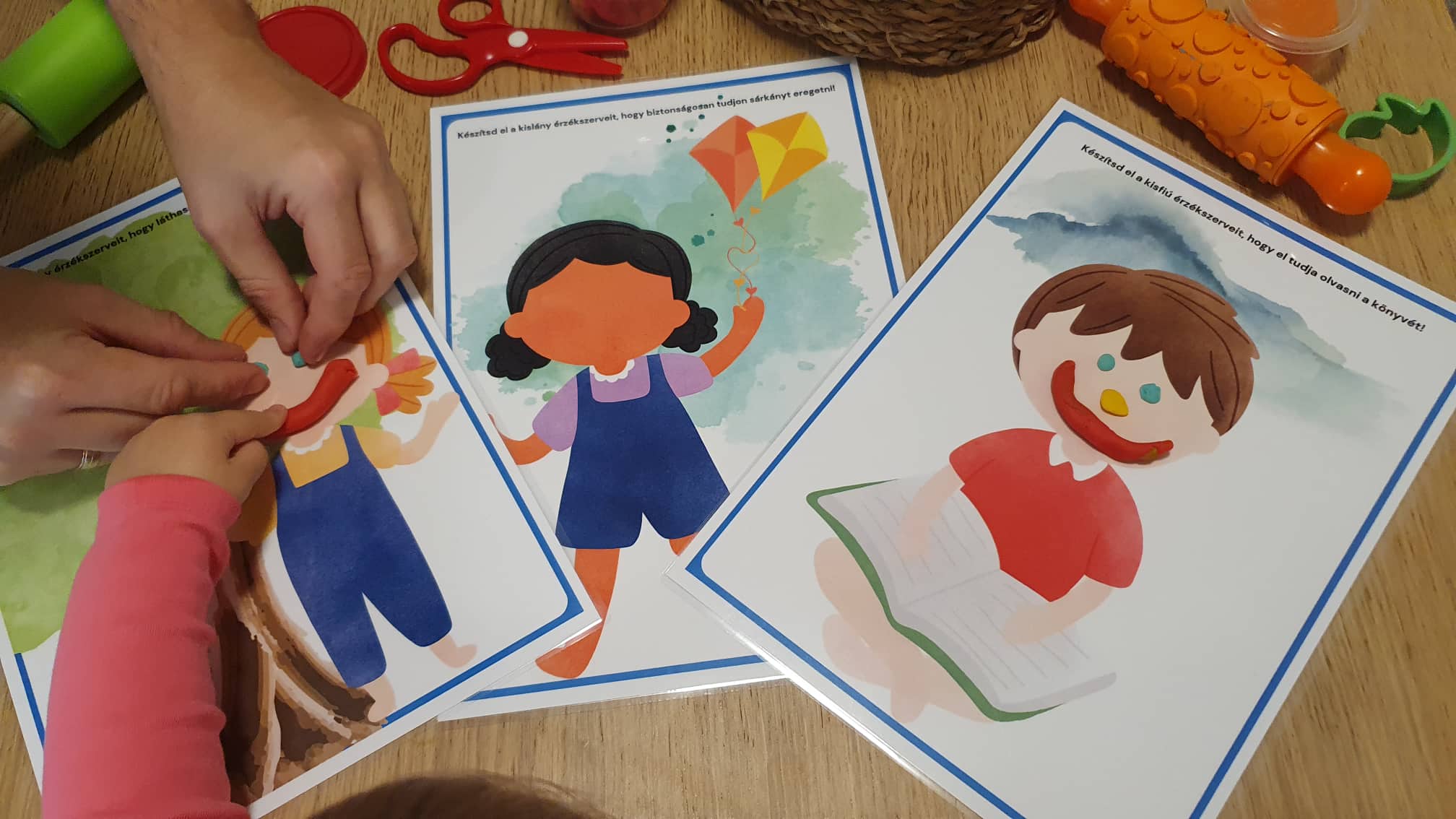 Ezeknek a gyurmázólapoknak a használatánál kicsiknél nem elvárás, hogy tudják, mit-hova tegyenek. Sokkal inkább a tapasztalatgyűjtésen van a hangsúly. Így nagyszerű, ha egy tükör is van a közelben és meg tudjátok nézni, hogy nektek hol helyezkedik el a szemetek- orrotok-szátok a fejeteken. Így már a kicsik is sokkal magabiztosabban fogják tudni a helyükre illeszteni a dolgokat. Az ovisok pedig már egyedül is ügyesen meg tudják formázni a kislány szemét vagy a kisfiú száját.