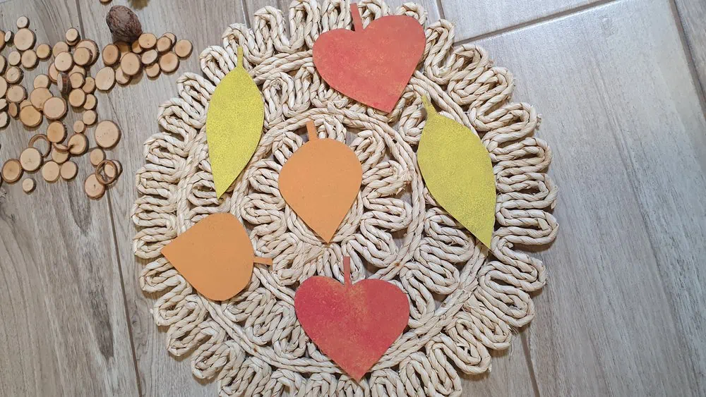 1. csupán néhány, papírdobozból kivágott falevél alap