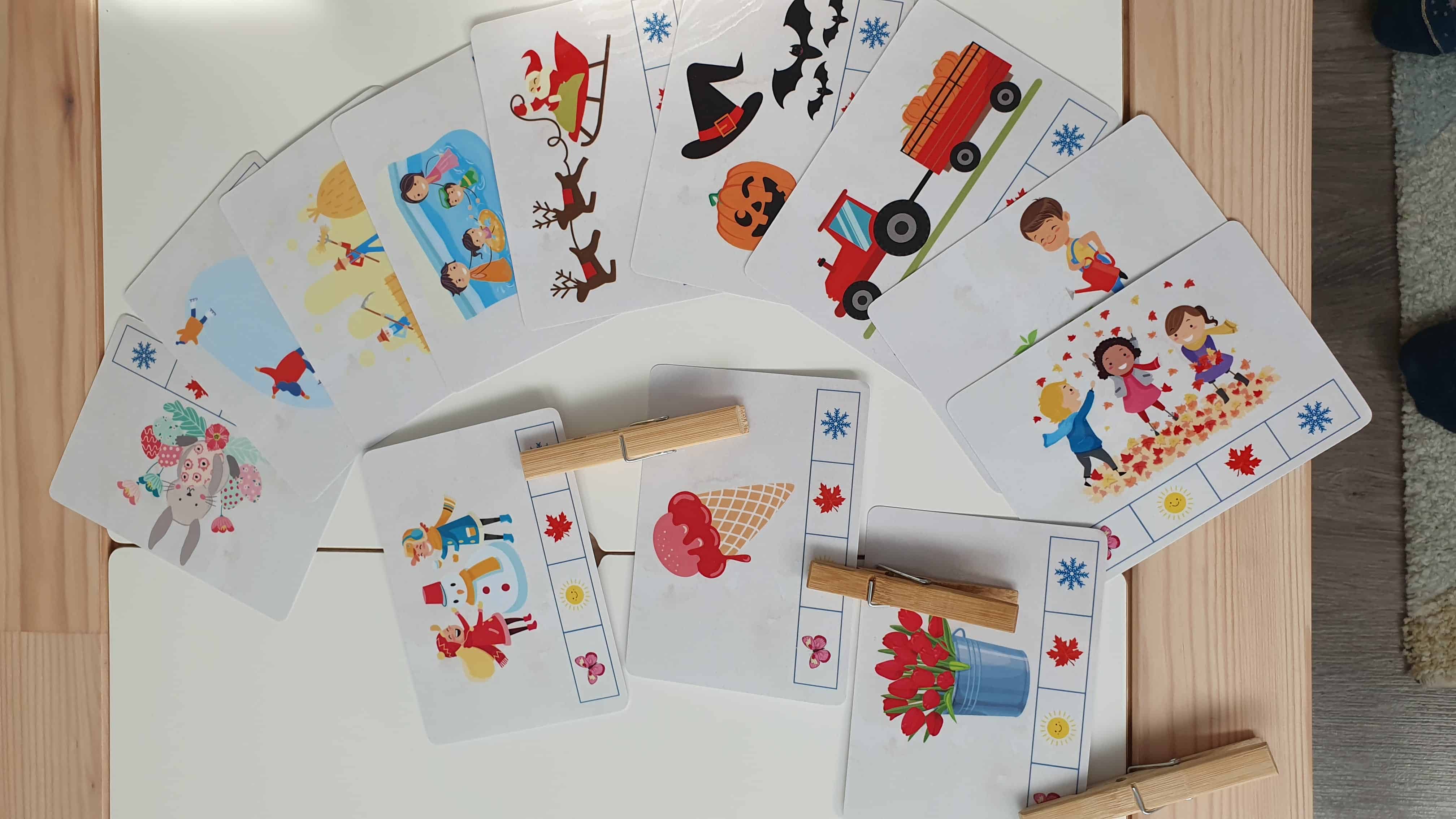 Most az év elején érdekes lehet „elővenni” az évszakokat, és picit beszélgetni róluk. Tervezgetni, vagy csak visszaemlékezni az elmúlt évre. Ebben segíthet Nektek ez a játékunk, amelyben egyszerre jelenik mind a 4 évszak. Emiatt pedig egész évben bármikor elővehetitek! :)