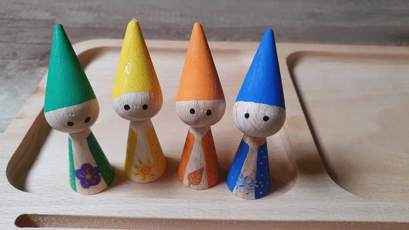 Az évszakok érzékeltetéséhez nagyon jó kellékek lehetnek az évszakmanók. Ezek a kedves manók ugyanis kiváló vizuális ingerbombák a gyermekek számára: élénk színeikkel könnyedén megjegyezhetővé teszik a kicsik számára az évszakok nevét és egymás utáni sorrendjét is. A természetes alapanyagokból készült figurákat jó érzés elkészíteni, majd megtapintani, játszani velük.