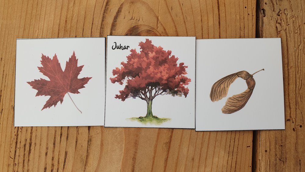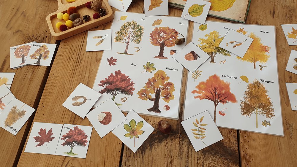 A csomagban a parkok és erdők legismertebb fáival talákozhattok és ősz meg is kereshetitek azok terméseit és lehullott leveleit is.