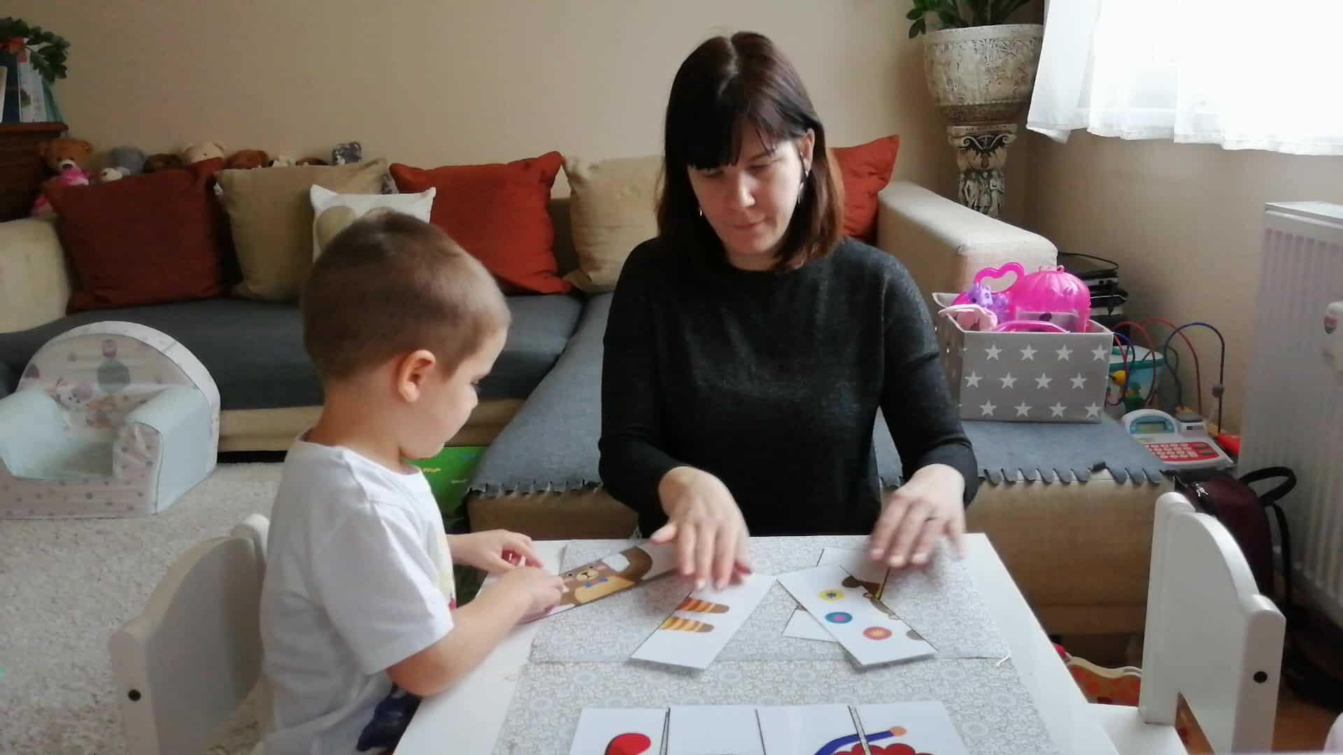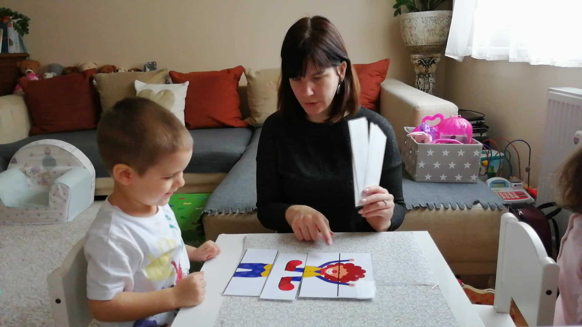 18 hó +: Csak egy képet tegyél ki egyszerre az asztalra, és azt próbálja meg helyesen összeilleszteni.