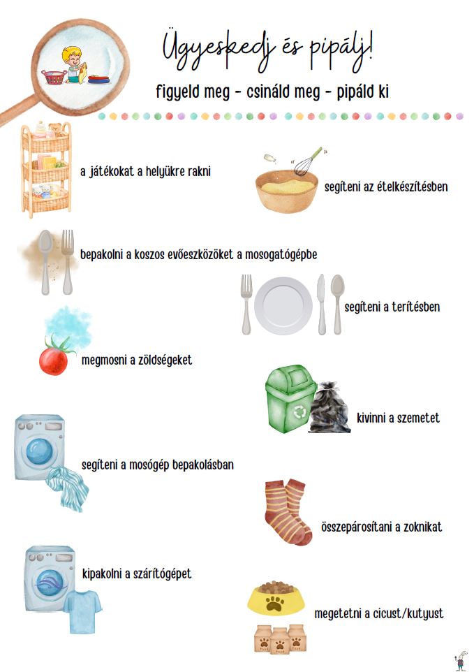 Ezen a lapon házimunka jellegű tevékenységeket találhattok, amely ezúttal vizuális is megjelennek így: – érzékelhetőek – mérhetőek – összehasonlíthatóak – elismerhetőek (kipipálhatjátok, ami kész) Szeretettel ajánljuk az egész család számára, kisovis kortól.
