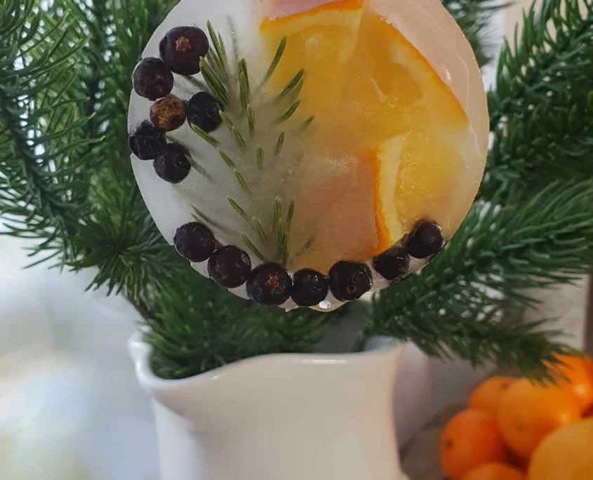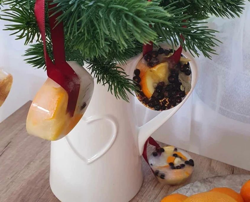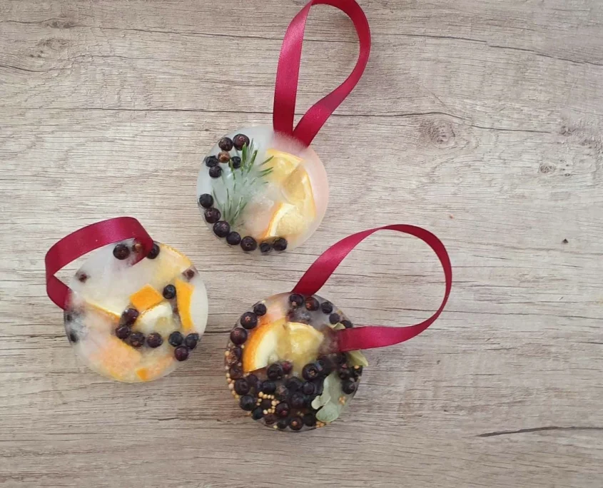 Jégbe zárt, tapintós karácsonyfadíszek