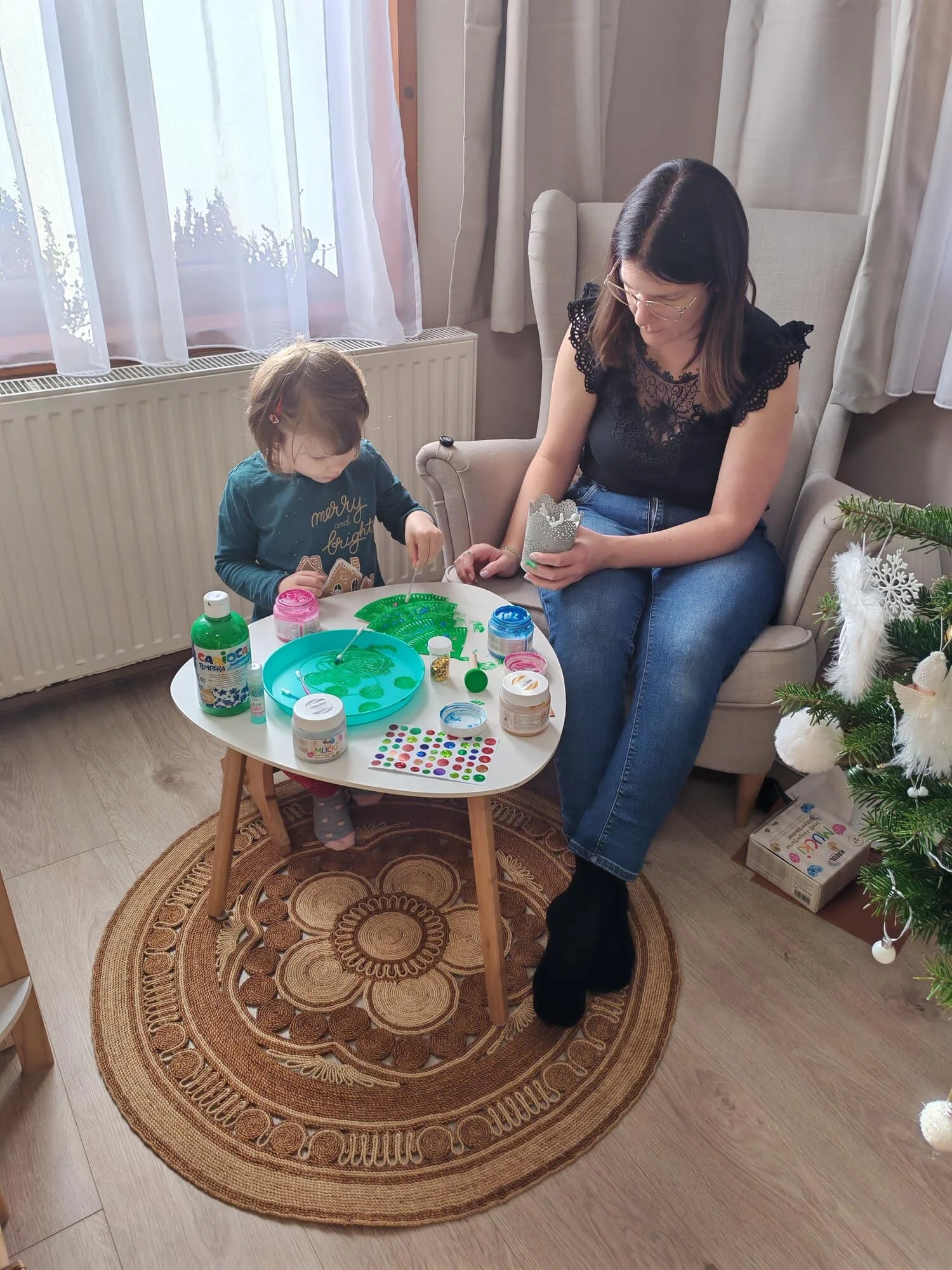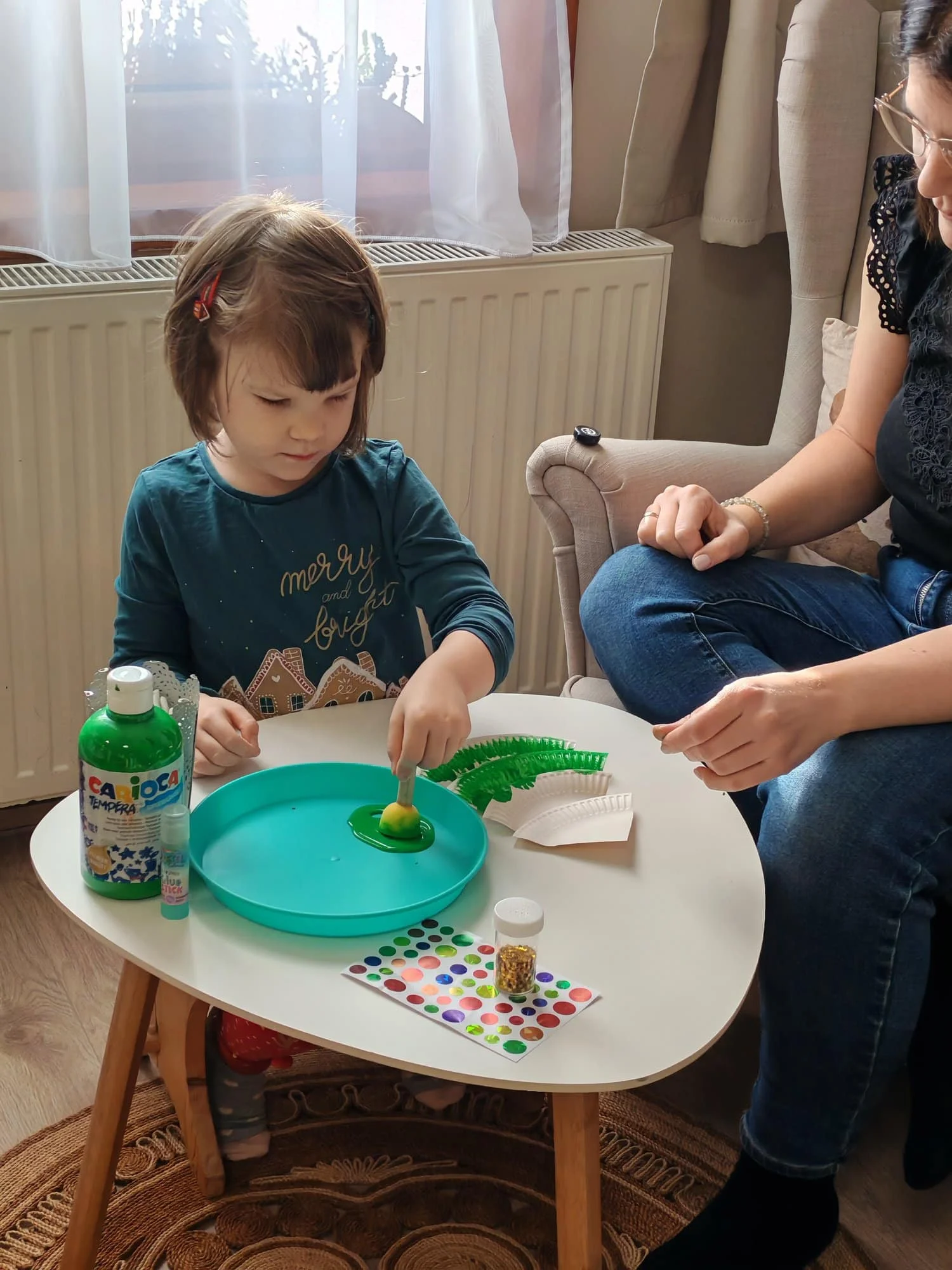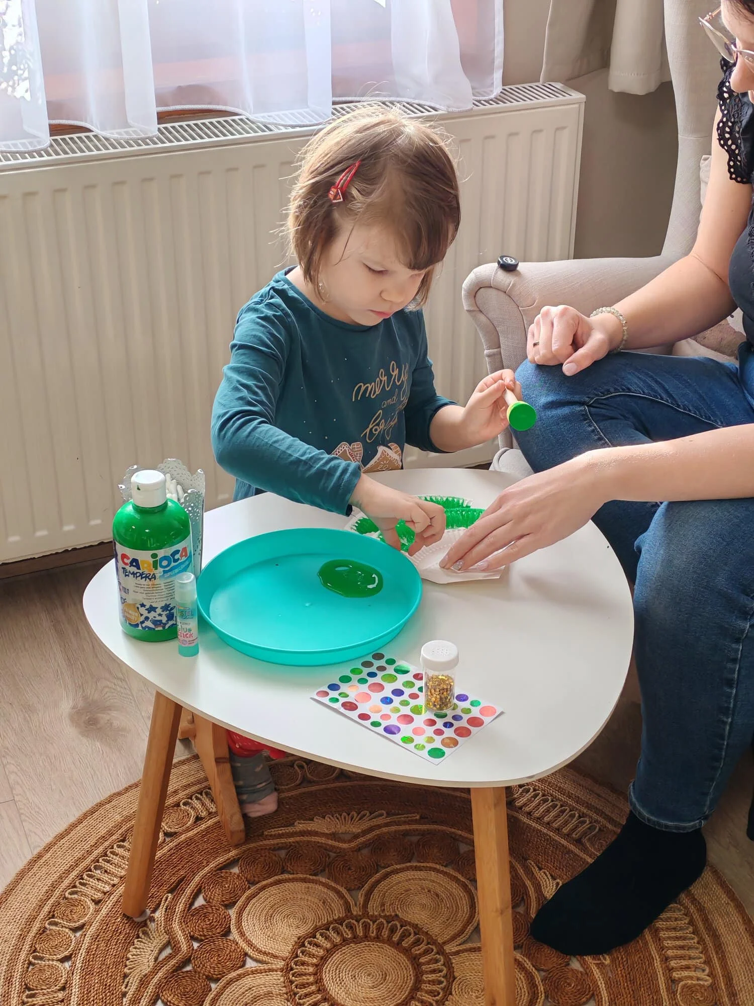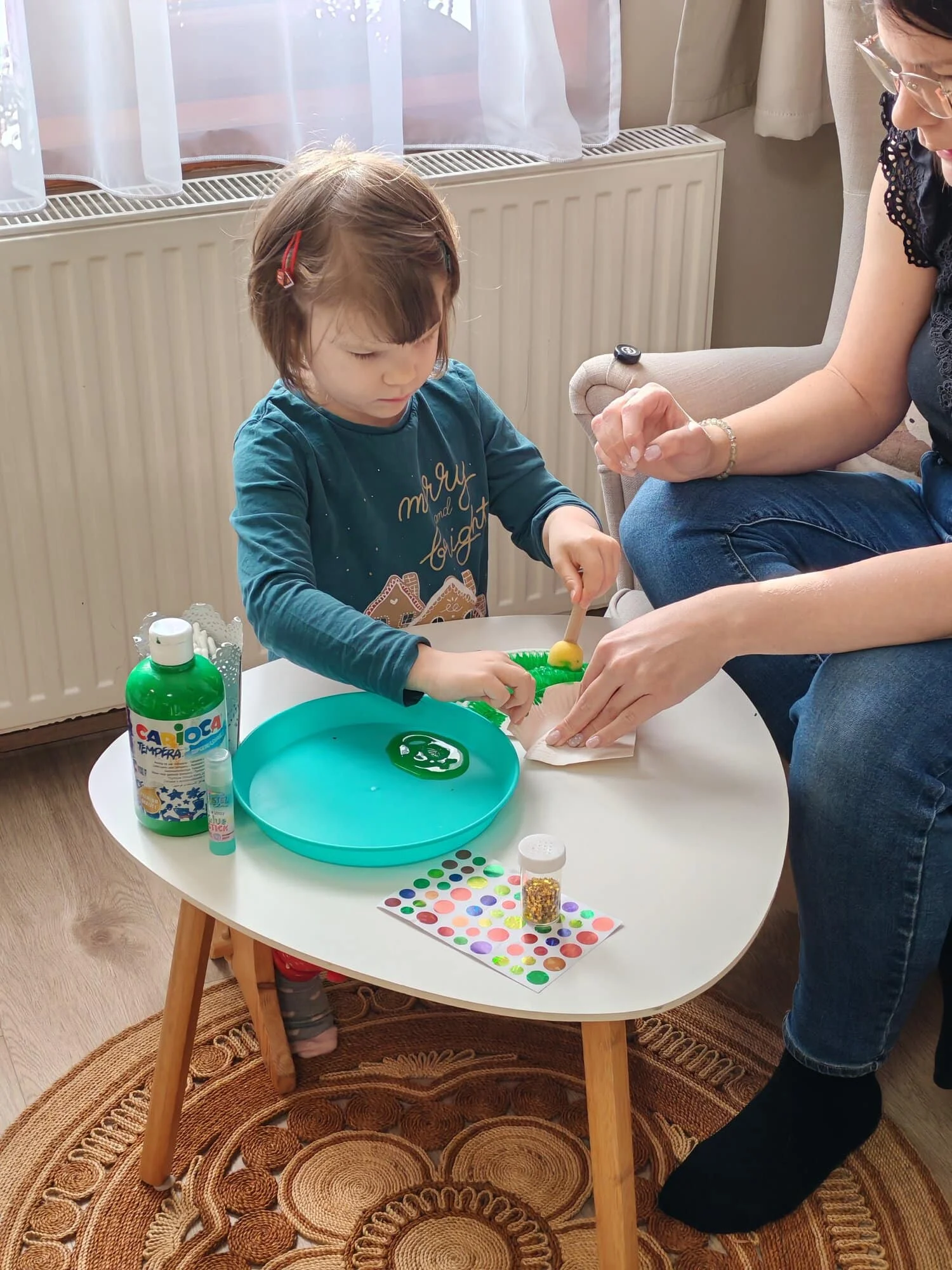 A bátrabbak akár már egy évesen is próbálkozhatnak ezzel az alkotással, de 18 hónaposan pedig már minden kis alkotó örömmel veszi kézbe például a szivacsecsetet. A díszítésnél pedig a fülpiszkáló helyett bátran használhatják az ujjaikat a pöttyözéshez.