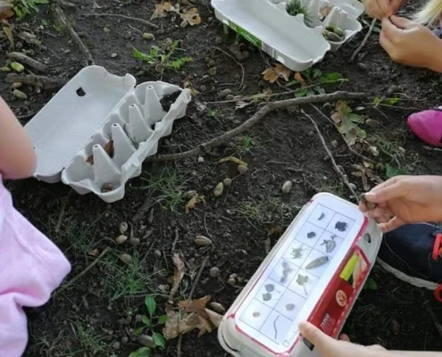 Ehhez a játékhoz a megmaradt tojástartókat hívjuk segítségül és tekintettel a szép, tavaszi időre, ezúttal kint fogunk kincsekre vadászni.