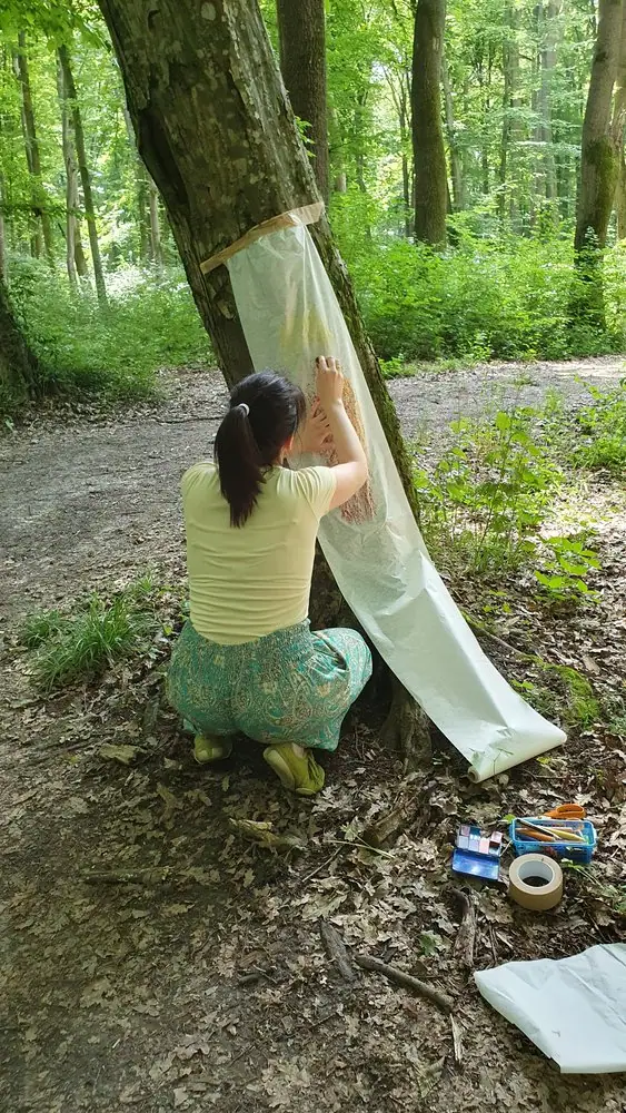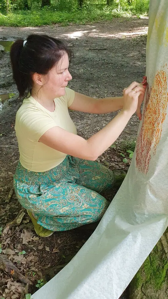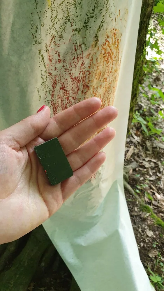 Már állni és fába kapaszkodni tudó tipegőknek is szeretettel ajánljuk a fakéreg átsatírozást, mint természetes tapasztalatszerzési, alkotós tevékenységet!