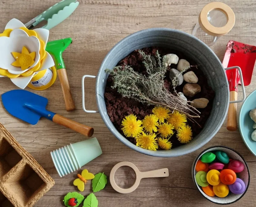 A földben turkálás igazi taktilis tapasztalásbomba, de azért az annyira nem jó, ha rögtön meg is kóstolják a kicsik a virágföldet.