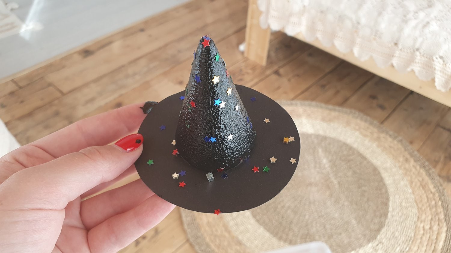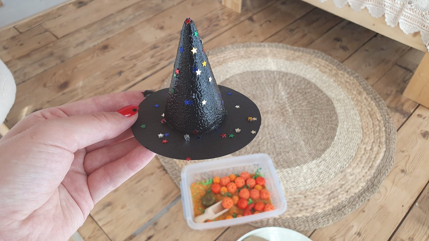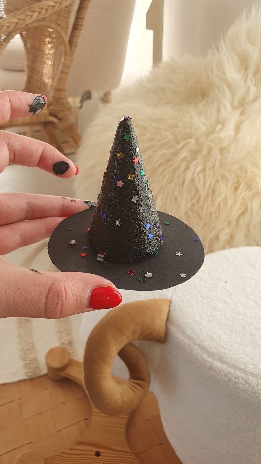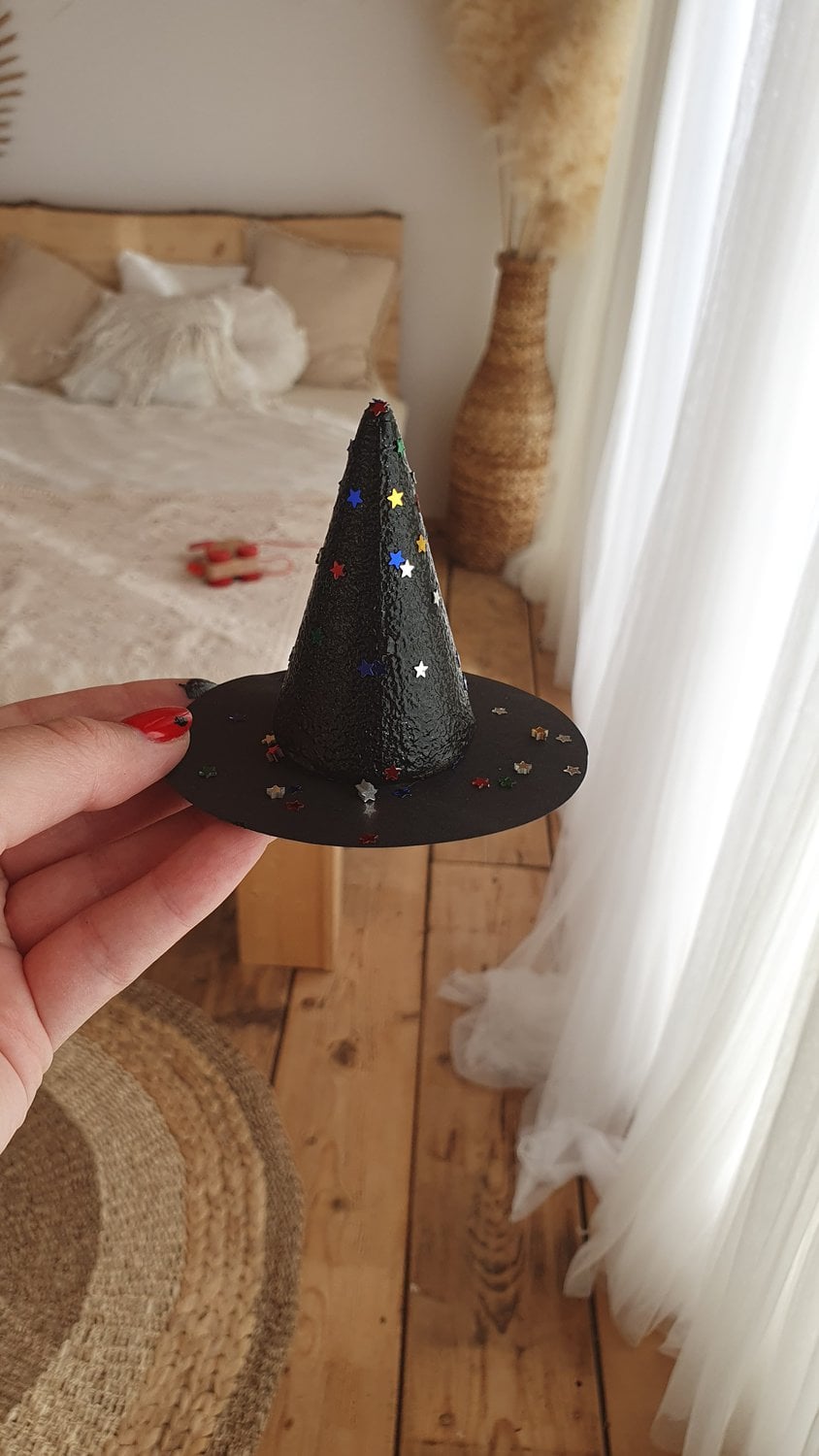 Egy nagyon cuki boszorkánykalapot fogunk készíteni most. Az ötletet Julia Donaldson – A boszi seprűnyélen könyv adta. :)