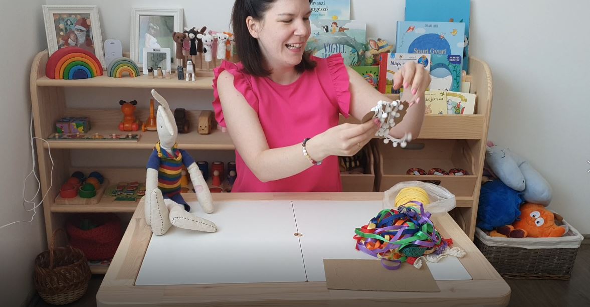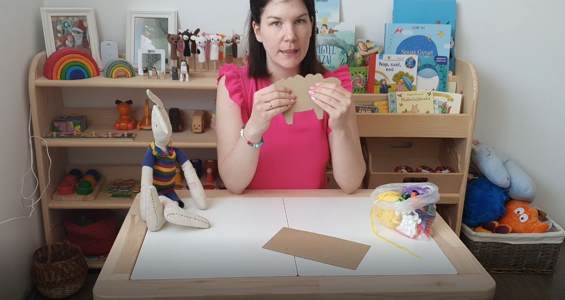 Ez az alkotás inkább az ovis korosztálynak szól, hiszen a fonal kezelése még meghaladja a kisebbek képességeit. De nekik sem kell szomorkodni, mert van tippünk! ;) Ha kisebb gyermeked van, akkor felejtsd el a fonalat, és ragasztózd be a felületet, majd jól szórjátok meg búzadarával, vagy fehér vattával. :)