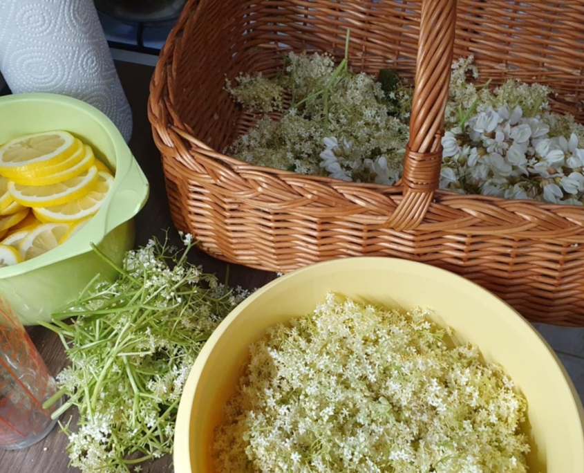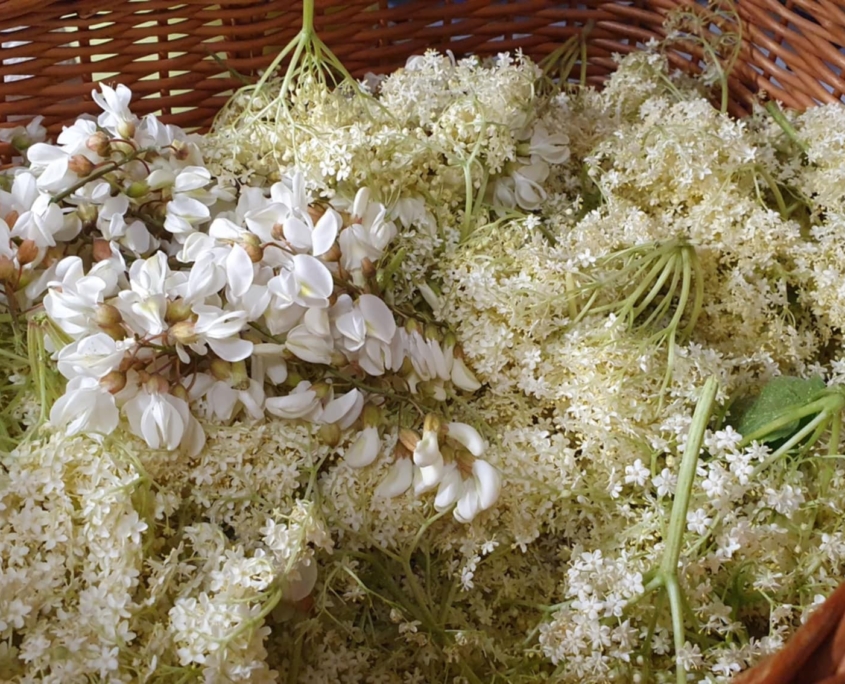 A gyűjtött virágokat nem szabad megmosni. Mi fonott kosárba szoktuk gyűjteni és várunk a feldolgozással néhány órát, hogy a kis bogarak, hernyók stb elhagyják a terepet. 🙂