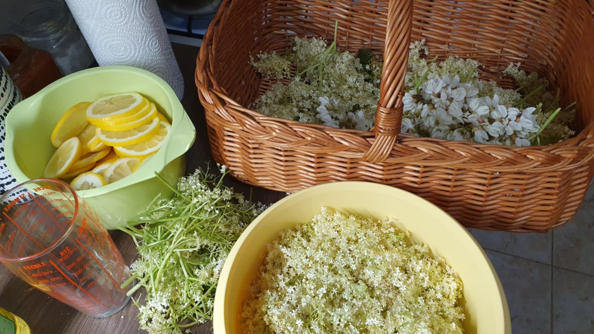 A gyűjtött virágokat nem szabad megmosni. Mi fonott kosárba szoktuk gyűjteni és várunk a feldolgozással néhány órát, hogy a kis bogarak, hernyók stb elhagyják a terepet.