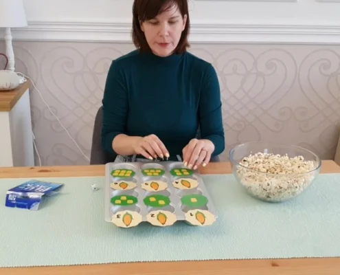 Egy szuper ovis játék, a madarak kedvenc csemegéjével, a kukoricával.