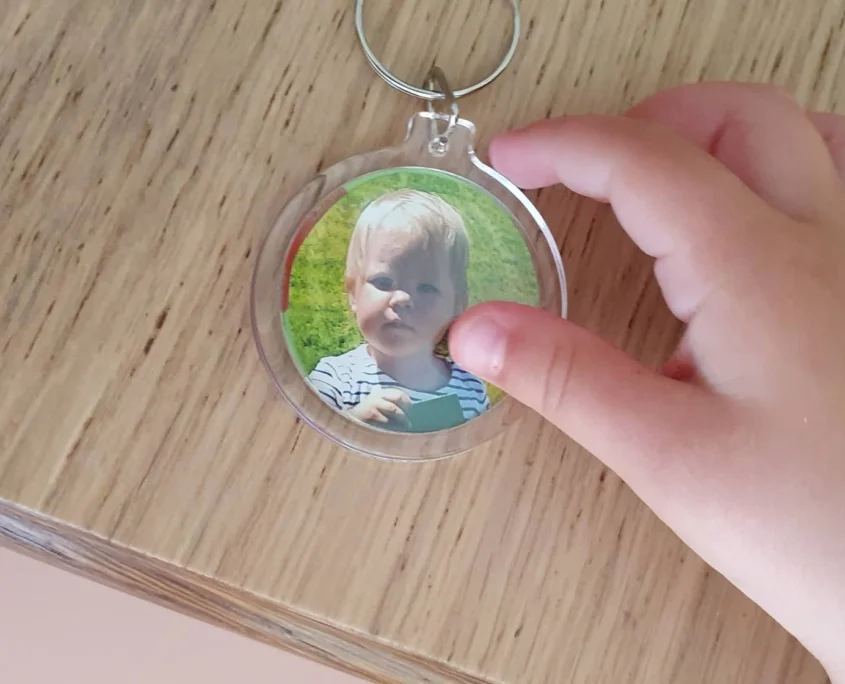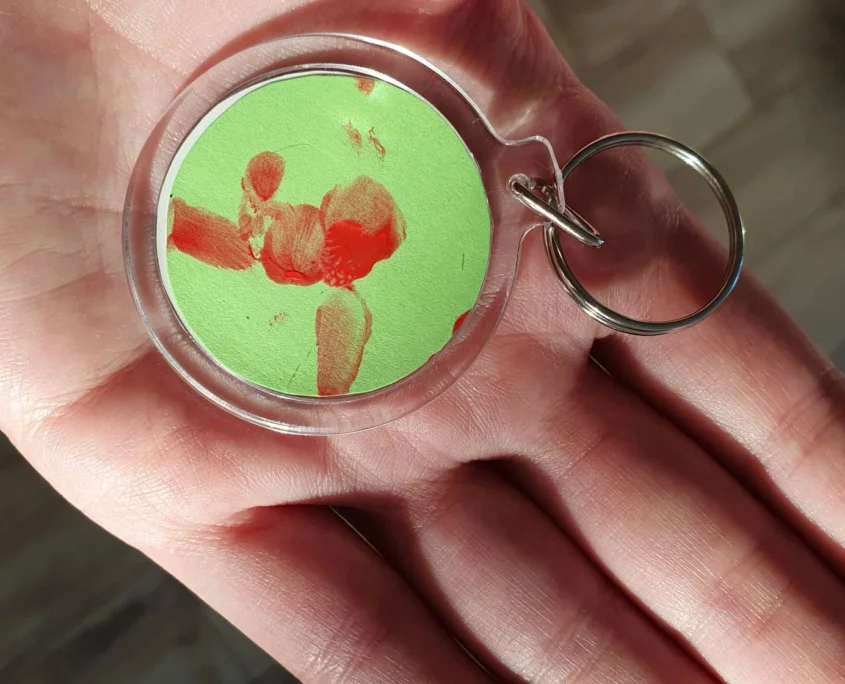 4. Ezután egy picit hagytam száradni, majd a kulcstartó egyik felébe beletettem az alkotást, a másikba pedig a képet és összepattintottam.