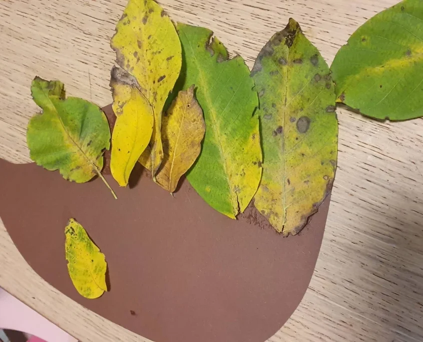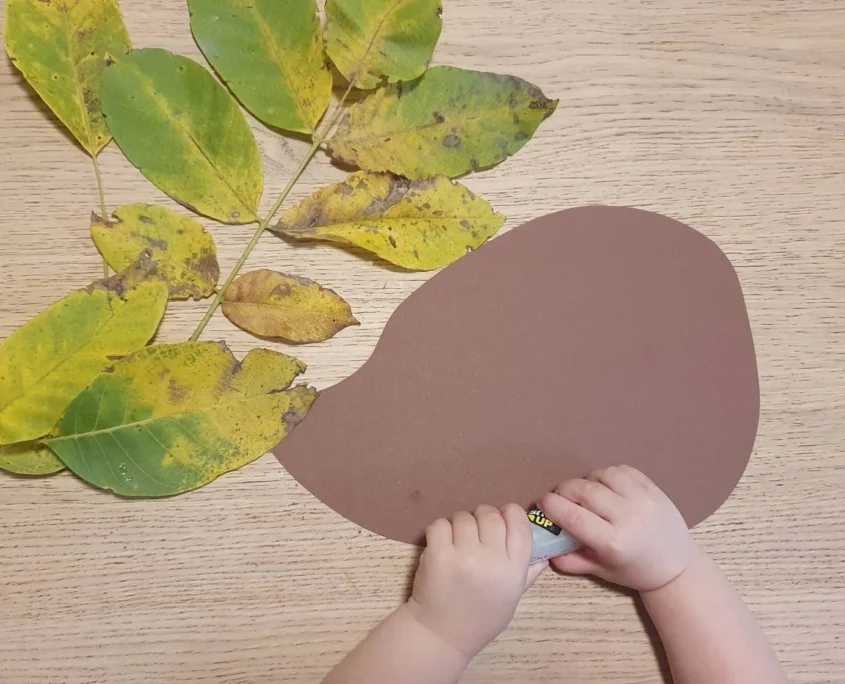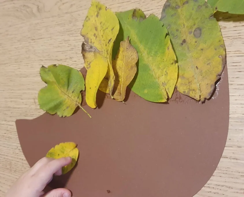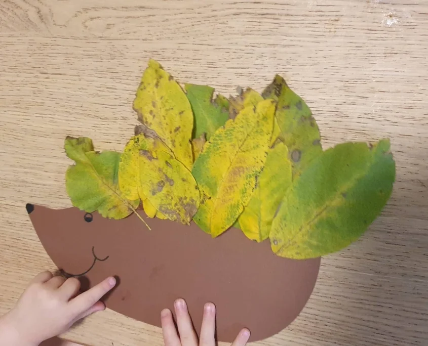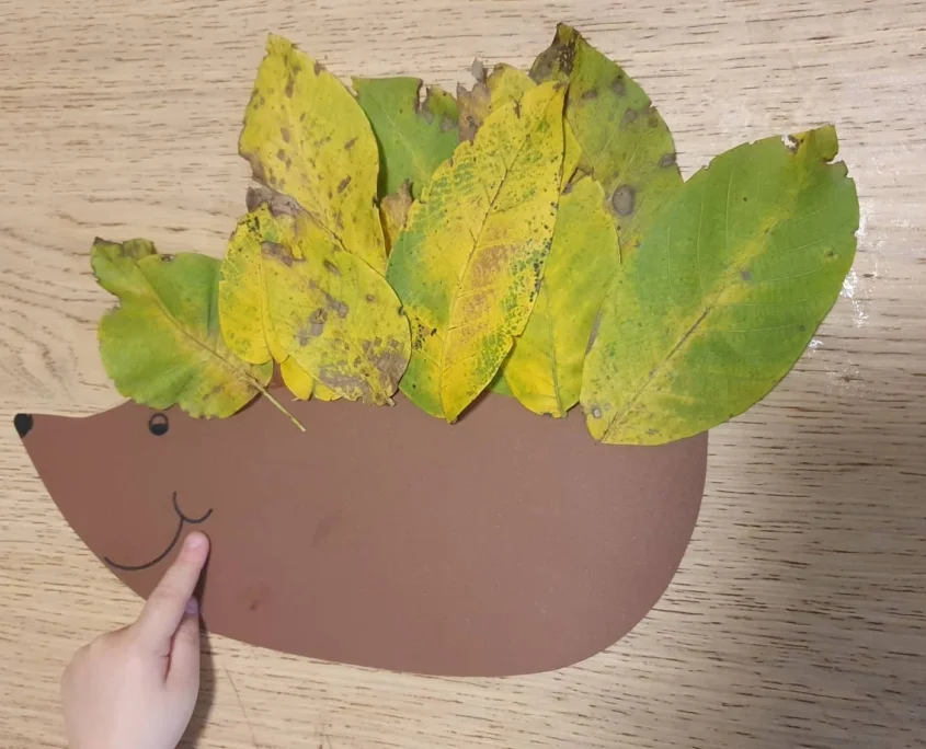A szép, színes levelek akár egy süni tüskéivé is válhatnak, nem is kell hozzá más, csak egy süni sablon és néhány színes levél, no meg némi ragasztó.