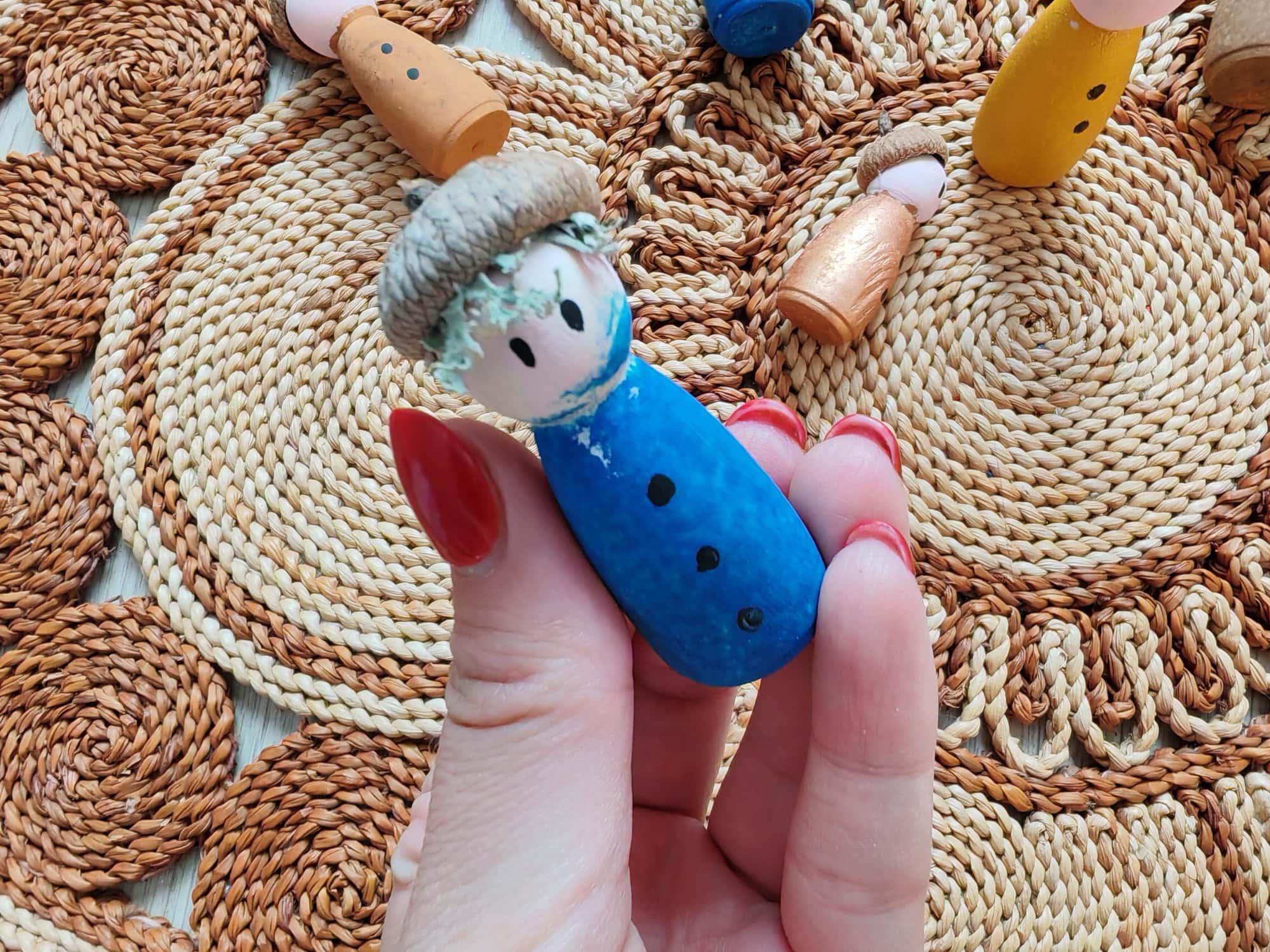 – natúr (nem festett és nem lakkozott) fa bábukat használtunk – beszerzési hely: Opitec webáruház vagy hobbybolt