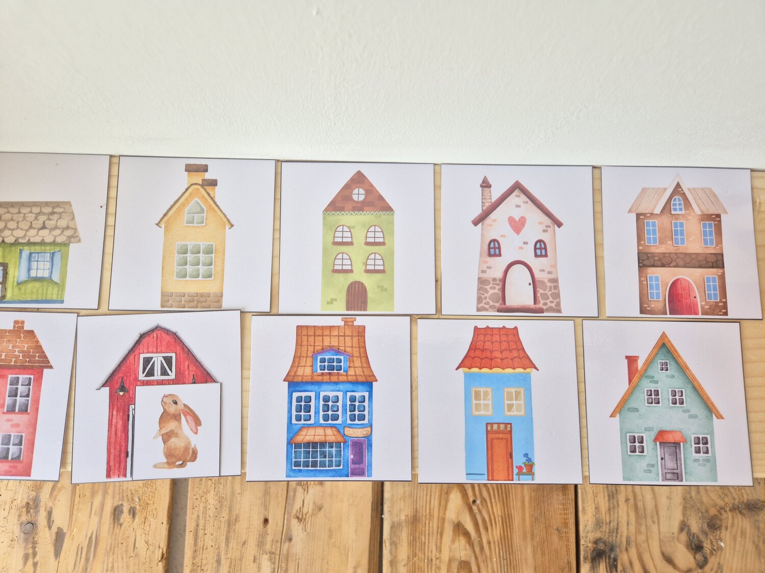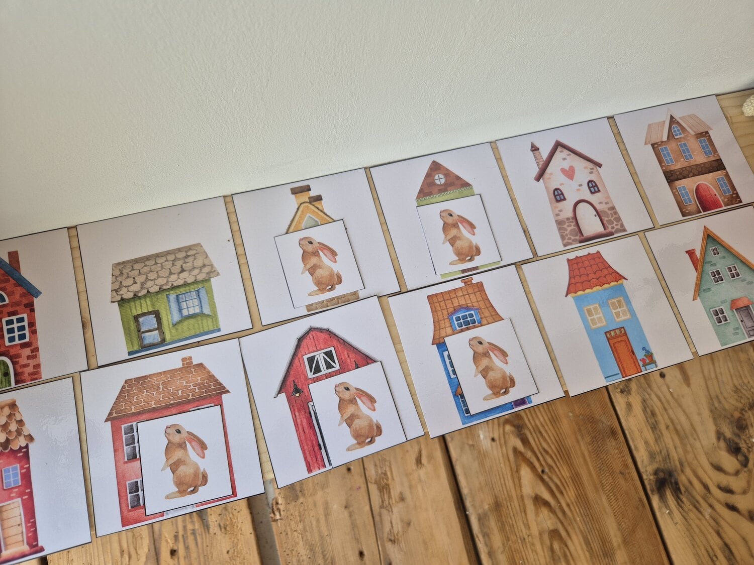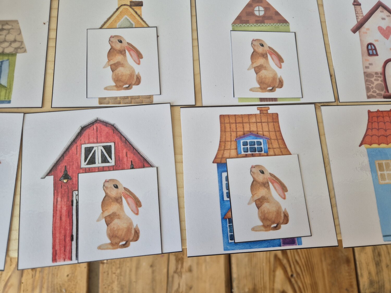 – kicsik: Helyezzék el a húsvéti nyuszikat a házakba.