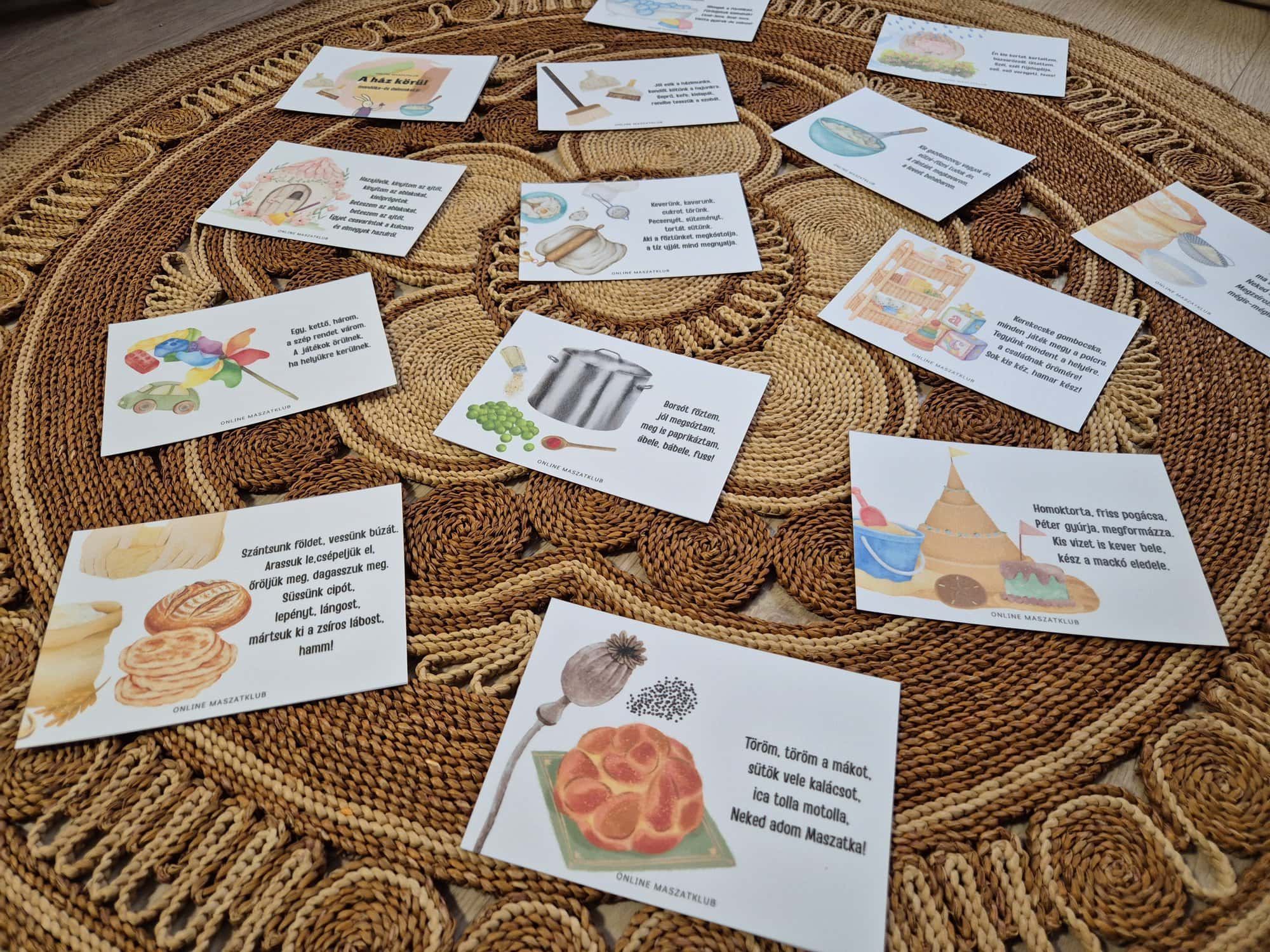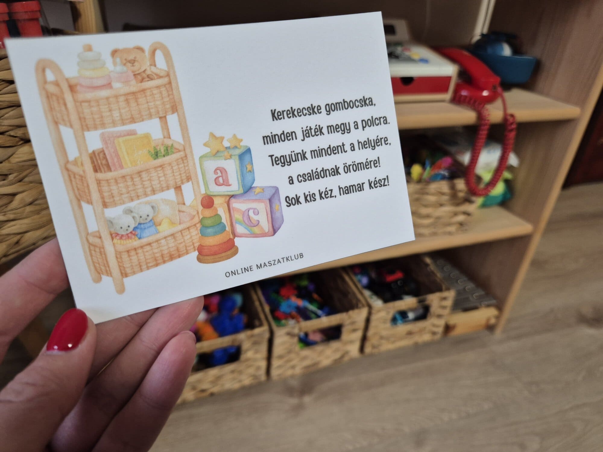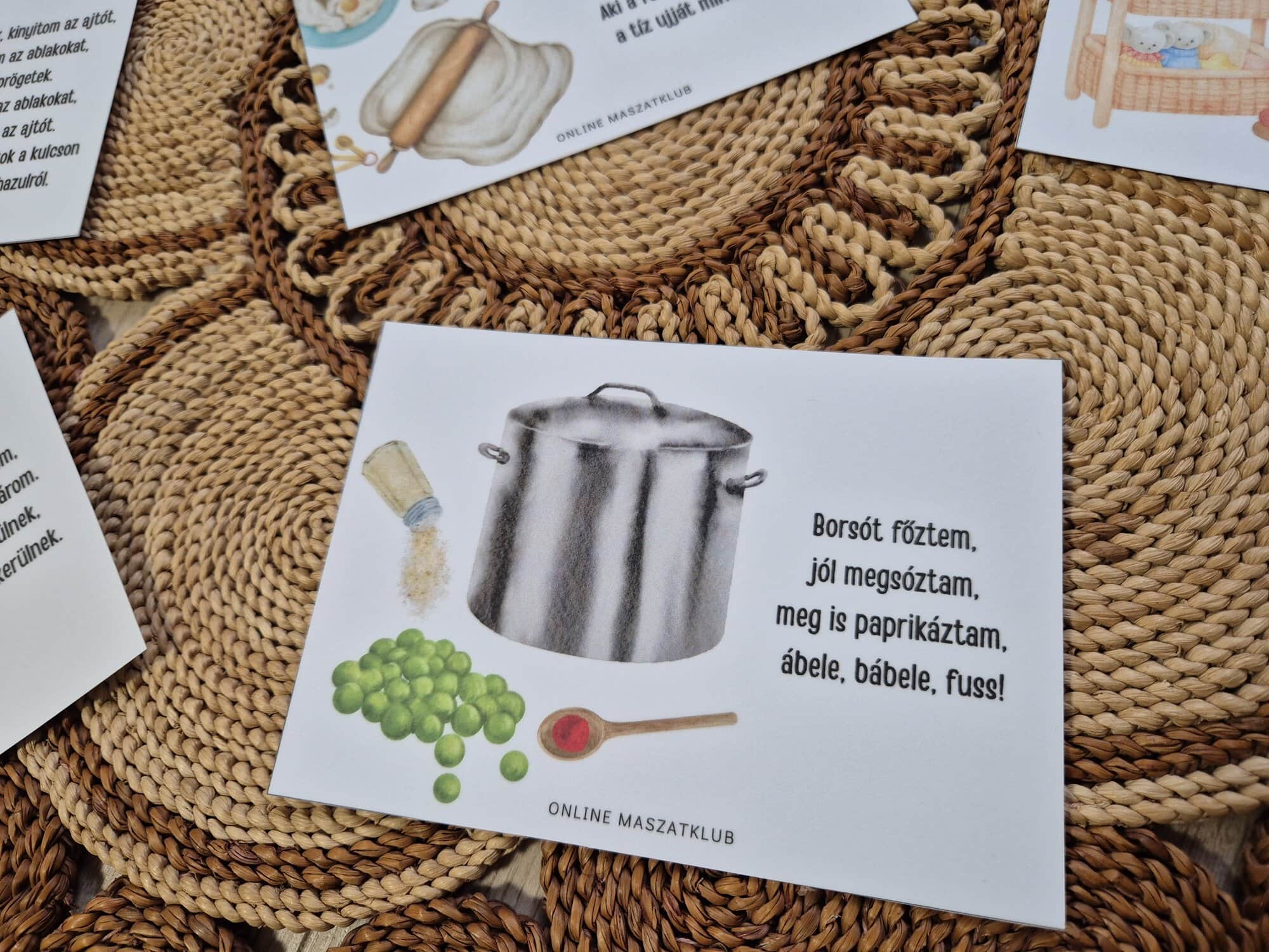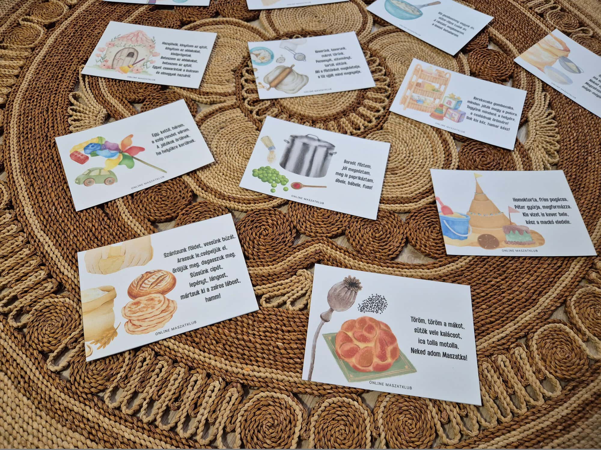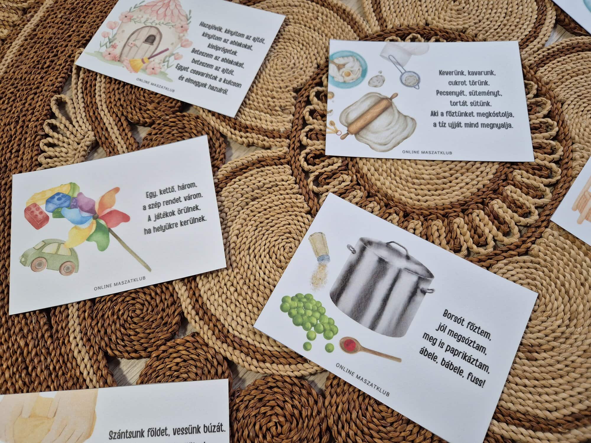 Maszattipp: A mondókakártyákat kifüggeszthetitek a fürdőszobába vagy a gyerekszobába is, így mindig előttetek lesz, ha szükség volna pl. egy kis motivációra az elpakoláshoz vagy a tisztálkodáshoz.