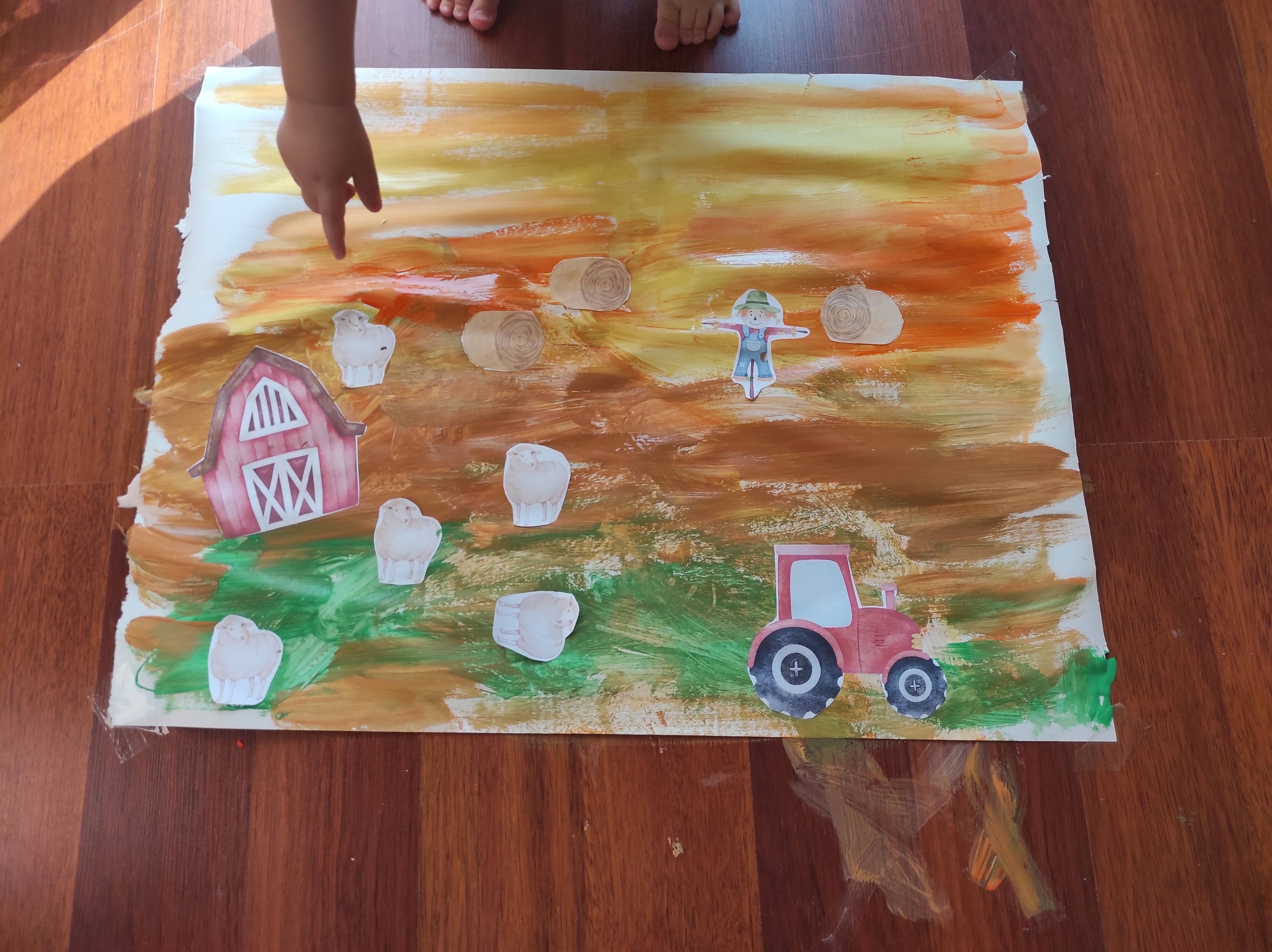 A fiúk nagyon élvezték, és háát énis 😃alig vártam, hogy Bálintnak kicsit segíthessek, ő (még) engedi egyébként, de ezután az alkotás után lehet nem kettő hanem három papírt fogok ragasztani a földre hogy nekem is legyen festegetni való. Andris saját maga ragasztotta a figurákat, Bálintnak ehhez már nem volt kedve, így az ő alkotását Andrissal közösen fejeztük be.
