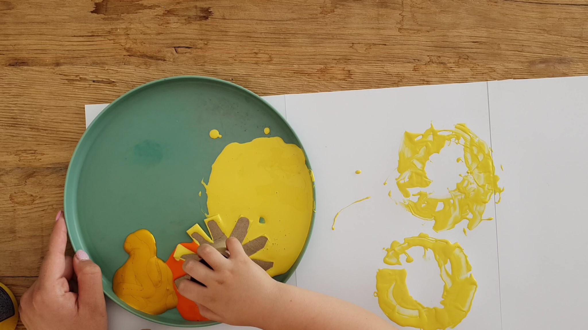 Már a legkisebbekkel is élvezetes móka lehet a napraforgó nyomatozás, amelyet ráadásul pillanatok alatt elő is tudsz készíteni és már mehet is a mókázás! Maszattipp: Akár házi, joghurtos festékkel (lásd Tudástár/ házi receptek) is nyomatozhattok napraforgókat! A lényeg, hogy kellően sűrű, kissé tapadós festéket használjatok hozzá.