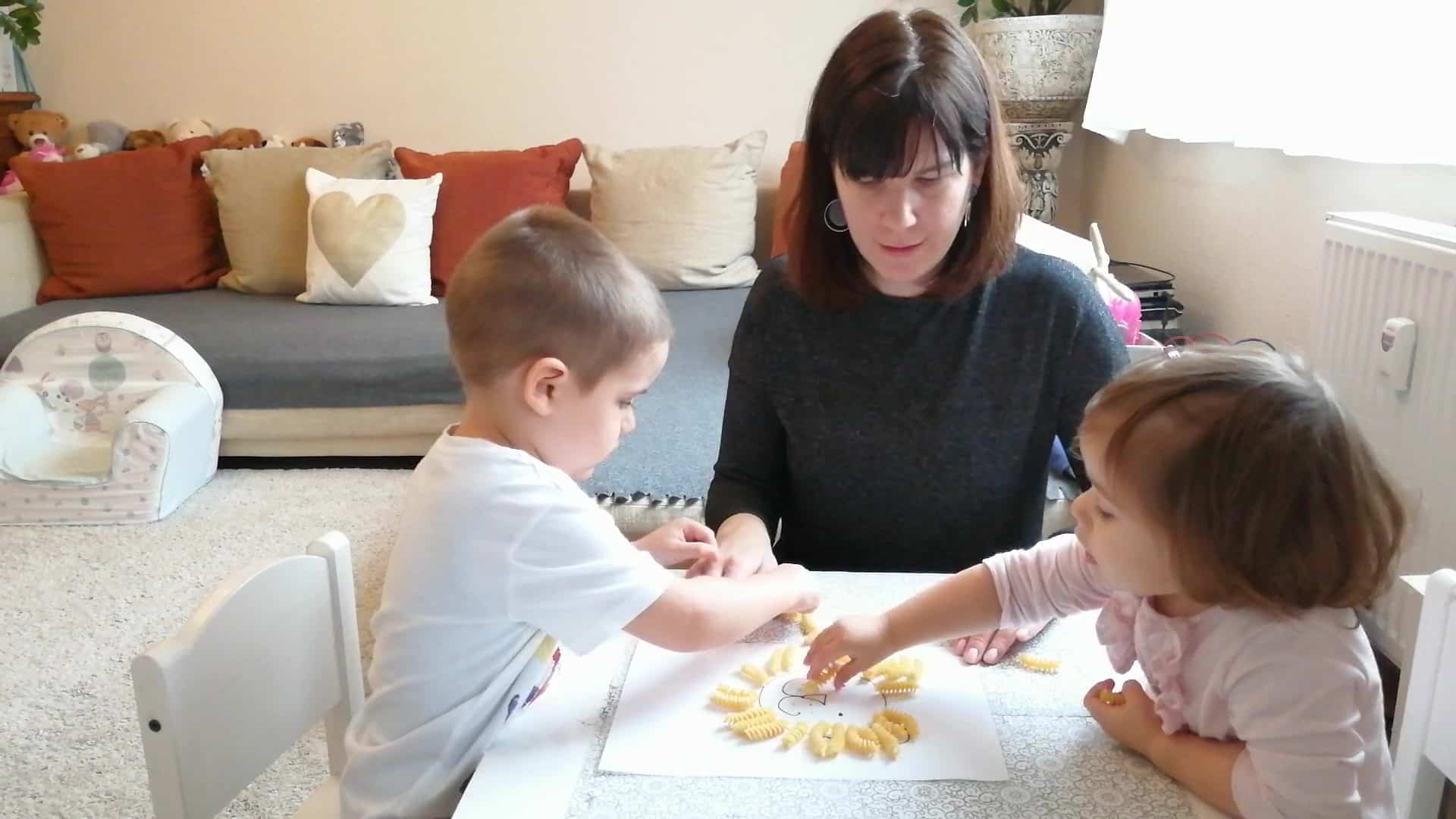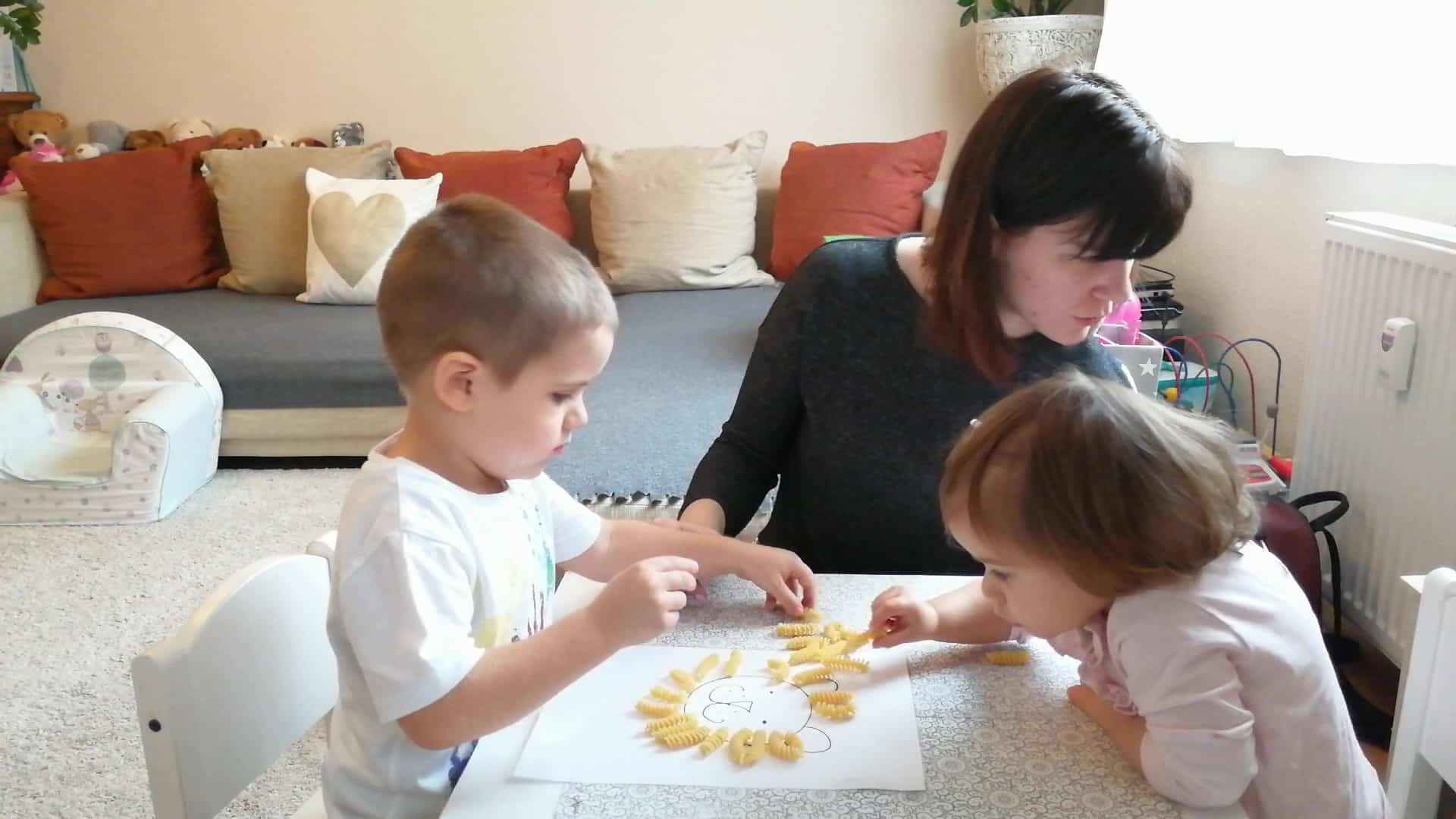 Filléres játék – mindössze 2 hozzávalóval: egy rajzlap rajta macifej mintával + száraz tészták a konyhaszekrényből