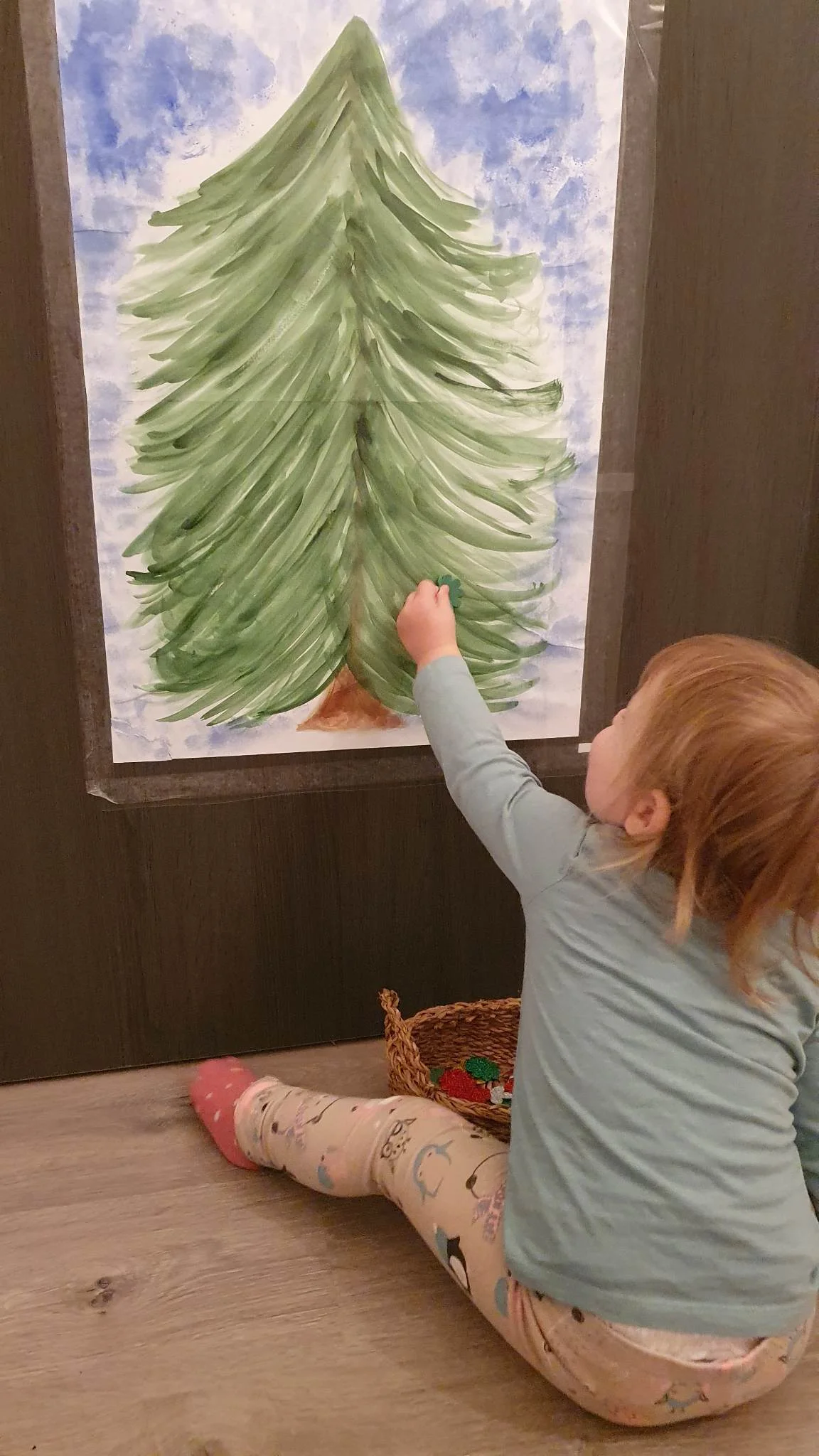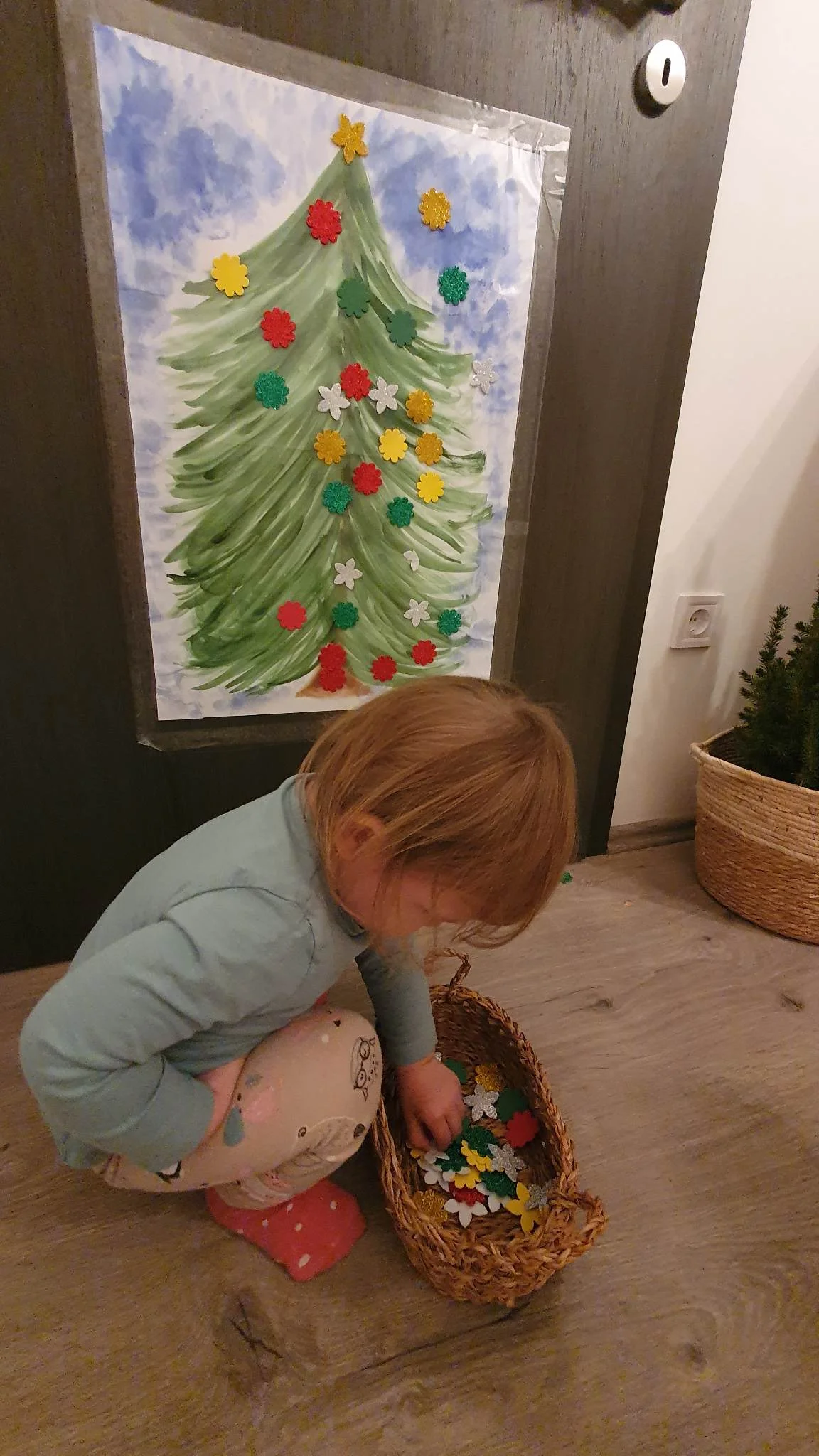 1. Ragaszd fel egy függőleges felületre, pl ajtóra a fenyőfa sablont.