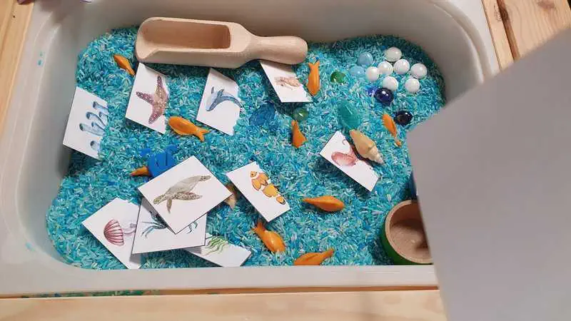 Nagyon szeretjük a különböző szenzoros turkadobozokat és kedvencünk az Ikea Flisat asztalba rejtett tengeri turkavilág is.