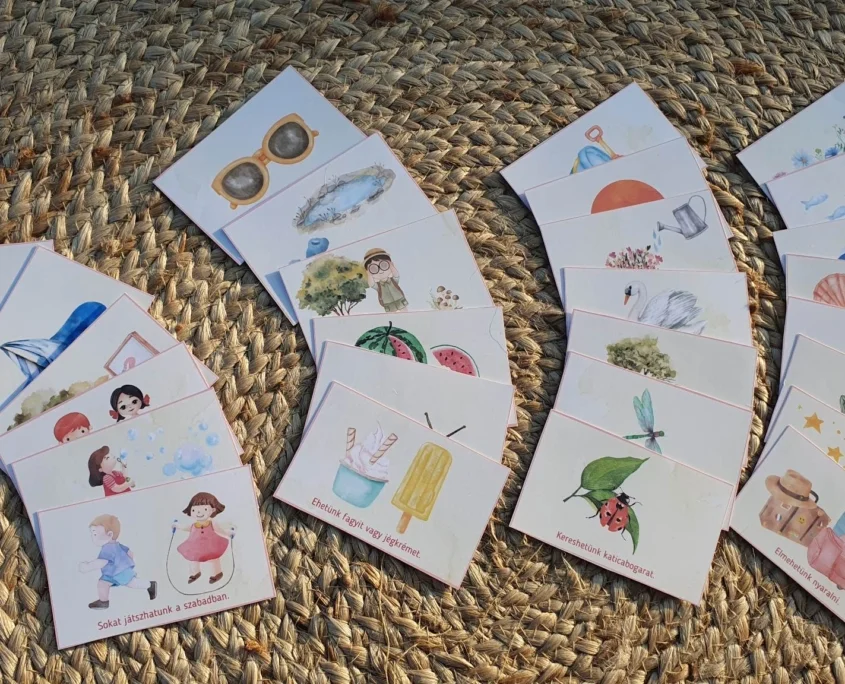 A sok-sok izgalmas kártya segítségével átbeszélhetitek és kiválaszthatjátok kedvenc nyári programjaitokat, amelyeket aztán kitűzhetitek a naptárra vagy a hűtőre. :) Így lesz alkalmatok részletesen átbeszélni a Rátok váró izgalmas tevékenységeket és fel is készülhettek rájuk. A kártyák továbbá izgalmas és egyszerű programlehetőségeket is kínálnak számotokra a nyári időszakra.