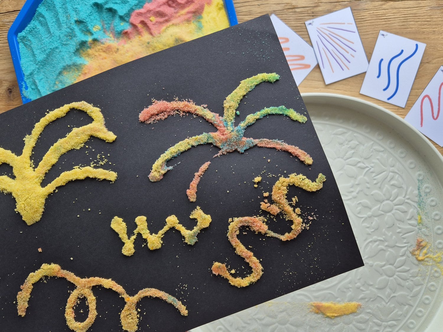 Ehhez a mágikus tűzijátékhoz kell egy kis papírragasztó, egy kis só és vízfesték vagy ételfestékes víz. És már mehet is a varázslat!