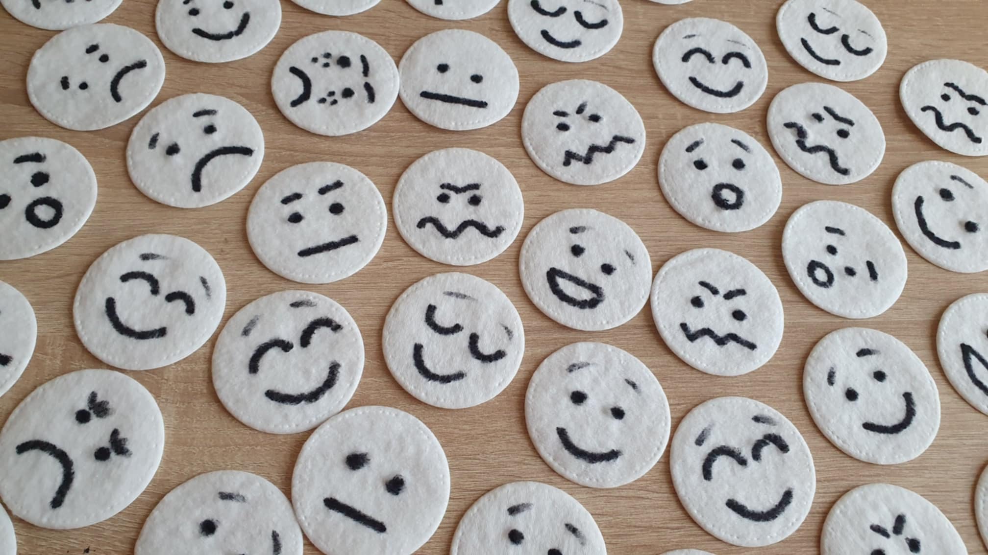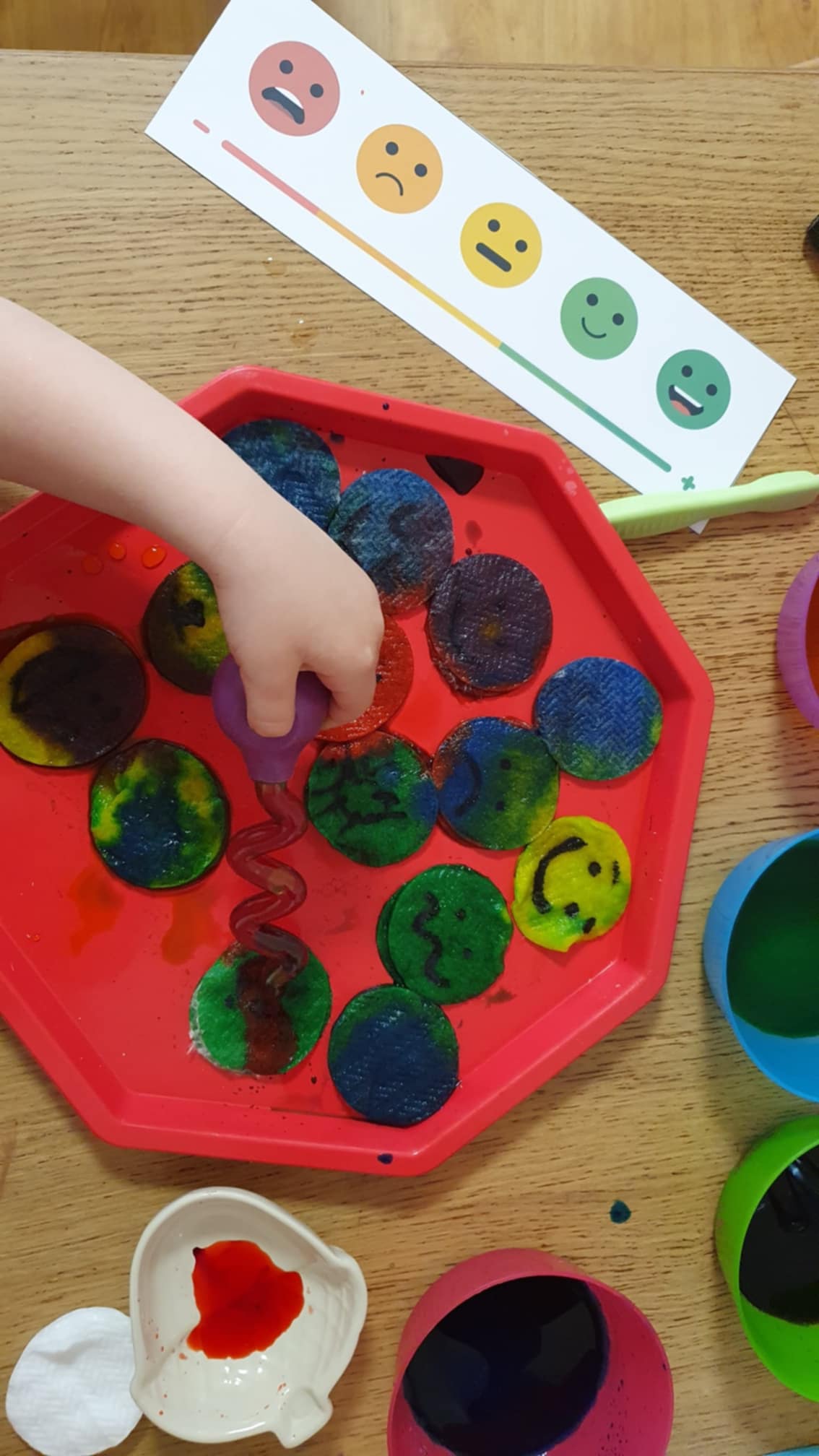 Vattakorongokra rajzoltam érzelmeket alkoholos filctollal, ezután jöhetett a pipettázás ételfestékes vízzel. :)