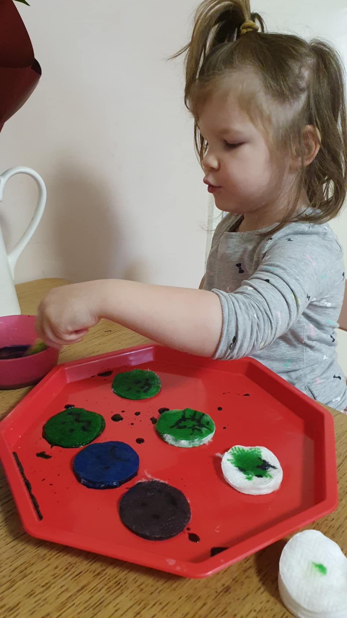 Vattapárnák színezése pipettával