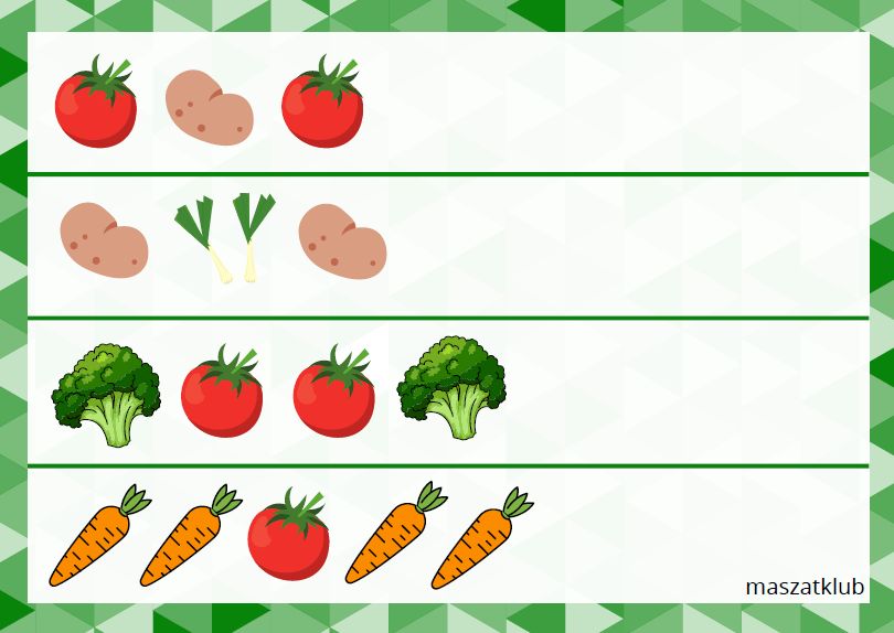– Majd folytatni tudja a sort a megfelelő zöldséggel (kételemű alapvető sorozatképzés)